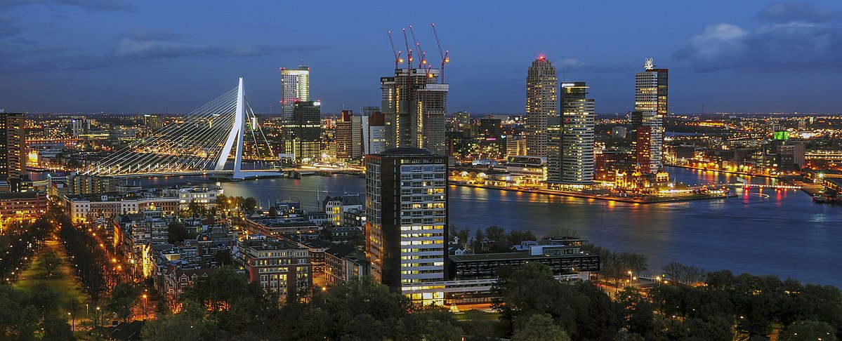 Значимую роль в Нидерландах играют и другие города, которые вместе формируют единую городскую сеть. Так, Роттердам, население которого составляет около 650 тысяч человек, известен одним из крупнейших портов мира. Город также прославился своей современной архитектурой, ярким символом которой стал мост Эразма.