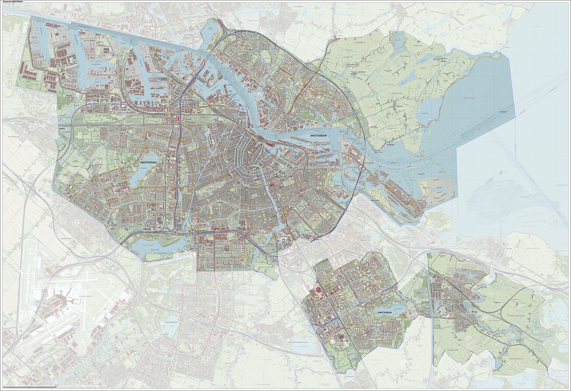 В Нидерландах нет мегаполисов с населением свыше миллиона человек. Самым крупным городом страны является Амстердам, в котором проживает около 900 тысяч человек, где плотность населения достигает 4768 чел./км². Этот город знаменит своими живописными каналами, включёнными в список всемирного наследия ЮНЕСКО, богатой музейной коллекцией, включая Рейксмюзеум и музей Ван Гога, а также уникальной архитектурой исторического центра. Амстердам также признан одним из самых велосипедных городов планеты, где велосипеды давно стали главным средством передвижения, опередив автомобили.