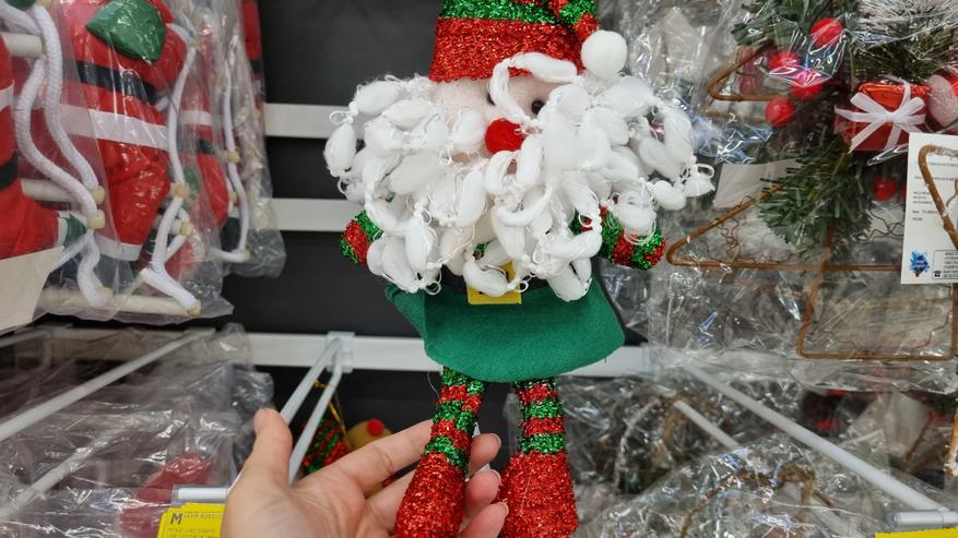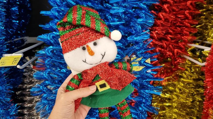 Можно найти интересные новогодние игрушки на длинных ножках. Одеты такие игрушки в красивые праздничные наряды, очень мягкие и приятные на ощупь. Благодаря своему практичному размеру идеально подходят в качестве праздничного украшения интерьера, а также в качестве декора возле елки. Больше всего понравился снеговик. Кстати, Снегурочку так найти и не удалось. Но в продаже есть разнообразные стеклянные шары со снегом внутри и разными фигурками, есть маски, искусственный снег, большой выбор дождика, конфетти и многое другое. Одно могу сказать точно, что с пустыми руками с магазина уйти весьма трудно.