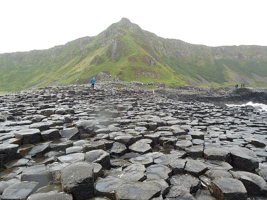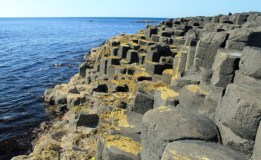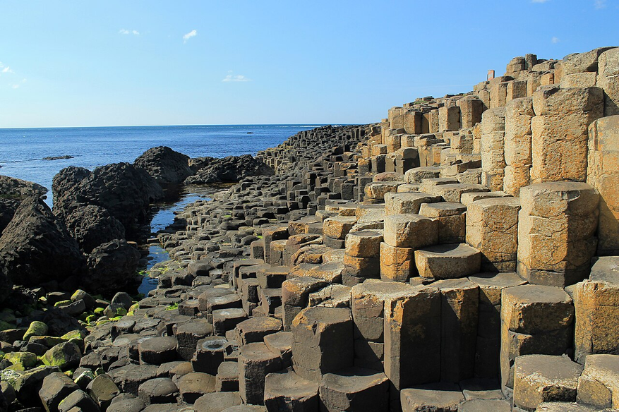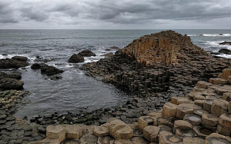 Примерно 50 миллионов лет назад здесь вулканы крайне активно истекали базальтовой лавой, которая, сталкиваясь с быстрым и равномерным охлаждением, трескалась и покрывалась трещинами в форме идеальных шестиугольников. Хотя иногда встречаются и фигуры с 4, 5 и даже 8 гранями. Лучшая достопримечательность для поклонников геометрии, одним словом.