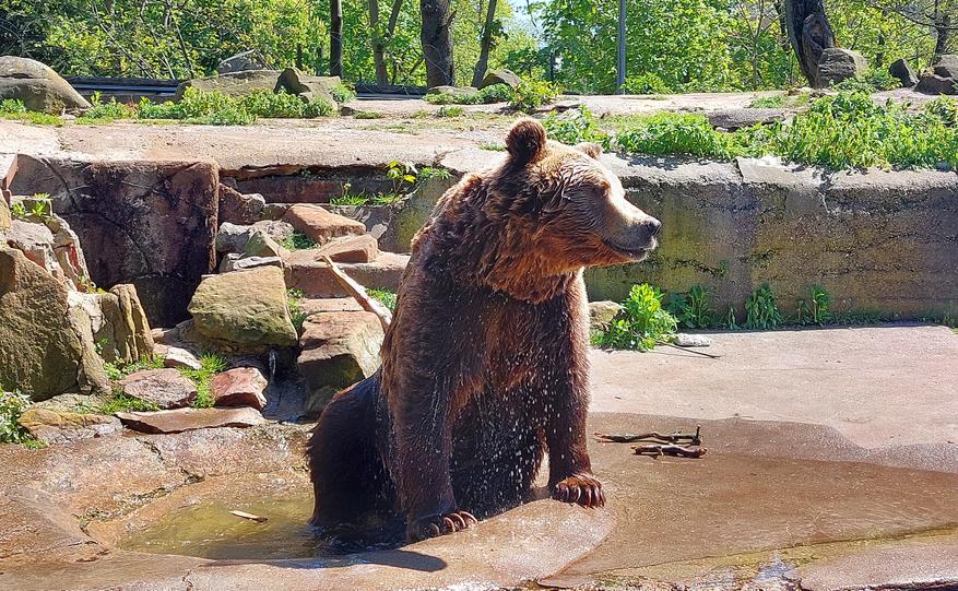 Имеющийся медвежатник был также построен давно, ещё в 1936 году. Он обветшал и находится в аварийном состоянии. Сейчас хотят построить большой современный комплекс для медведей в том месте, где находится вольер для оленей. А в старый медвежатник переселят некоторых хищных птиц.