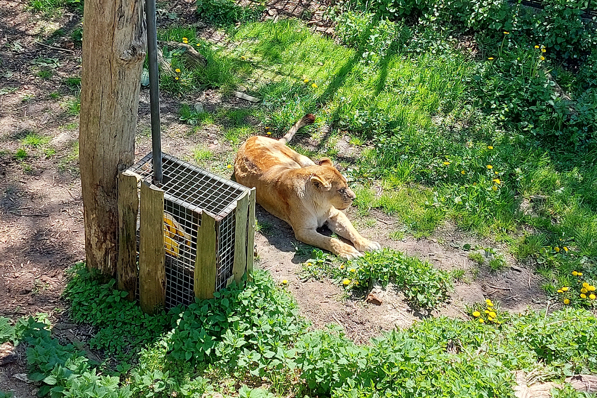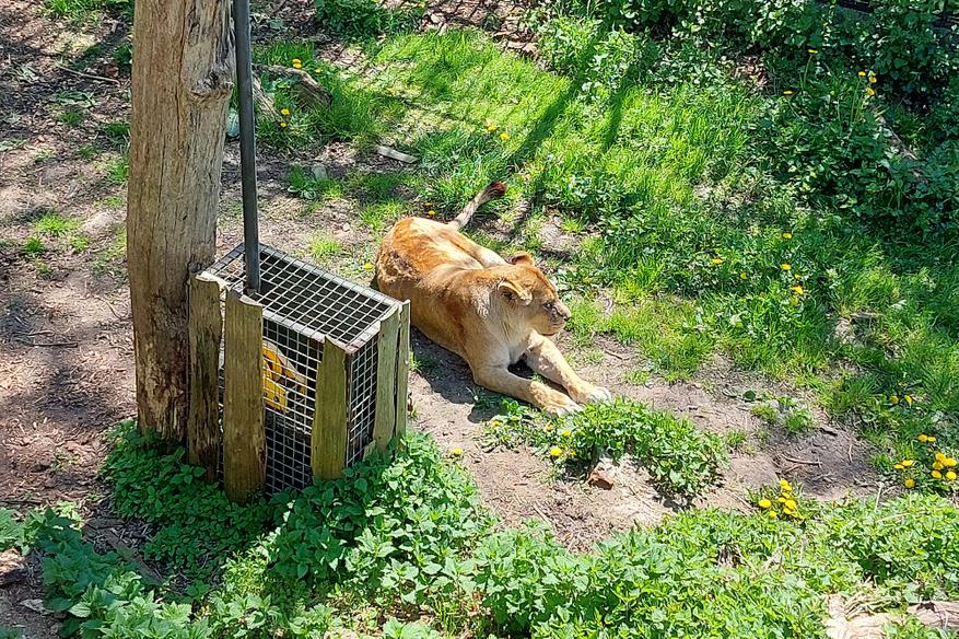 Самыми первыми из животных гостей встречают забавные еноты. Работники зоопарка стараются создать благоприятные условия для каждого обитателя. Для енотов — это вольер с огромным деревом. Они не только перемещаются по своей площадке, но и лазают по дереву.