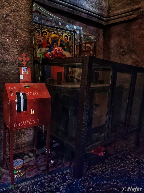 Высота церкви - 12 метров. Размеры тоже 12х12. Фактически это куб, высеченный из камня. Внутреннее пространство небольшое. Там иконы, ящик для пожертвований и сундук, в котором хранится копия Ковчега Завета. Чтобы зайти внутрь, необходимо снять обувь.
