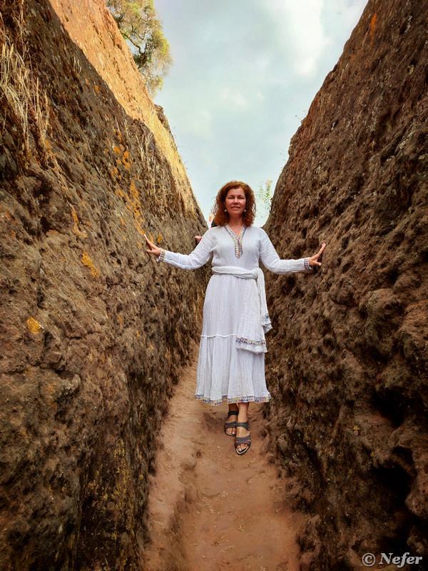 В плане церковь имеет форму креста. Ее уникальность заключается в том, что она не построена в прямом смысле, а выдолблена в скале. Это примерно конец XII века или начало XIII-го. Камень - красный вулканический туф. На первый взгляд объект кажется совершенно недоступным. Спуститься к церкви можно по узкому коридору. Преодолев последние метры в тоннеле, вы оказываетесь во дворе.