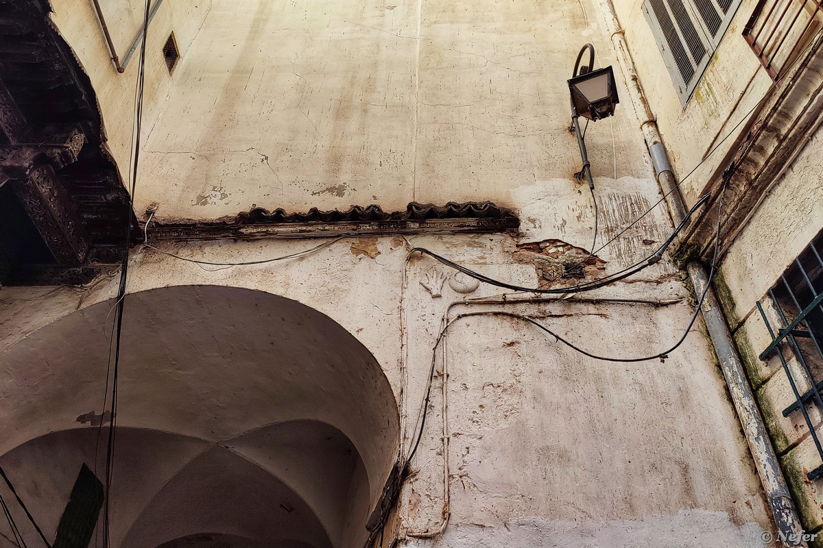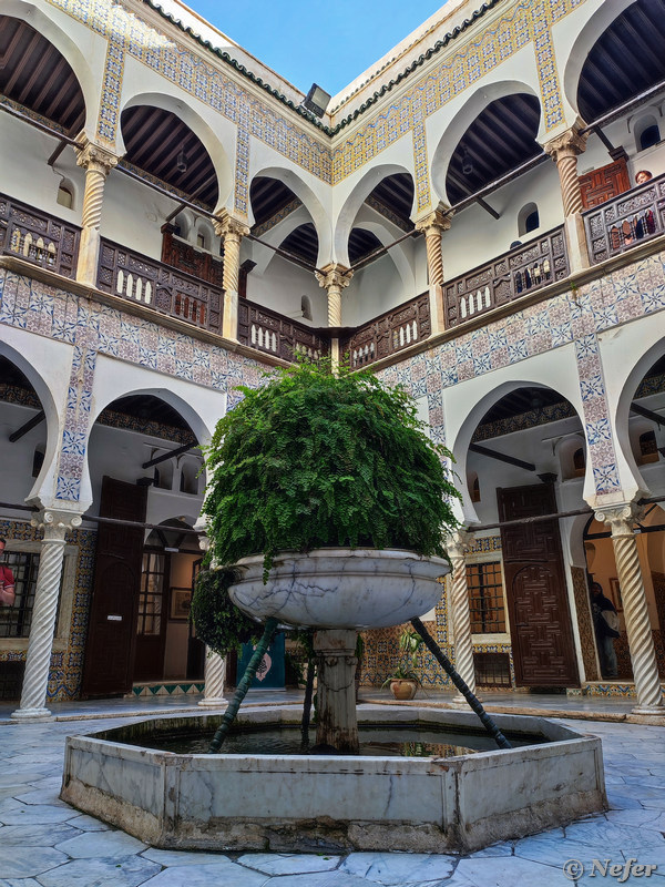 Традиционный дом не имеет окон снаружи, чтобы обезопасить частную жизнь от чужих взглядов. Свет попадает из внутреннего дворика, в котором всегда располагается фонтан. Это дворец Мустафы Паши. Он был правителем Алжира с 1798 по 1805 годы. Дом построен в 1798-1799 годах и был его семейной резиденцией. В Касбе также есть другие дворцы: Дар Азиза, Дар Хассан Паша и Дворец деев.