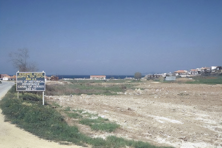 Ксерксов канал — это один из немногих следов персидской культуры в Европе. Он был создан в 480 году до н.э. Длина канала составила 2 км при ширине 30 м, средней глубине около 3 м и максимальной — до 15 метров. Столь большая ширина позволяла одновременно проходить по нему двум триремам (боевой корабль с 3 рядами весел).