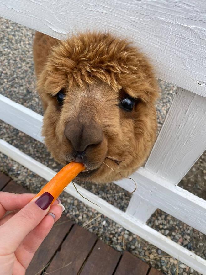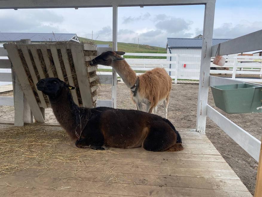 Что касается самой фермы — всё ухоженно, чисто, животные аккуратные, контактные. Но их немного: несколько альпак, пара кроликов, козочки, лама и барашки. И всё. Территория небольшая, деревьев нет совсем — летом, в жару, там особенно не разгуляешься. Мы были уже на нескольких фермах, и эта, пожалуй, самая скучная из всех.