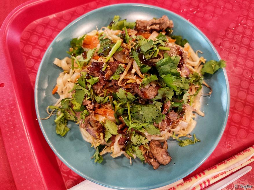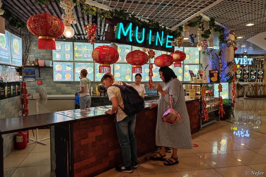 Фудкорт никуда не делся, вокруг вьетнамский антураж. Кажется, это называется фьюжн, да? В общем поели вьетнамской еды, традиционно выпили по манго-шейку. Хо-ро-шо! В этот раз - внезапно - выбрали не фобо, а свинину в ананасовом соусе с рисом и пад тай бо (рисовая лапша, говядина, красный лук, зелень, ростки бобов, жареный арахис, тамариндовый соус). Стоимость блюд гуманная - 380 рублей и 300 рублей. Манго-шейк стоит 250 рублей, самые вкусные в MUINE.