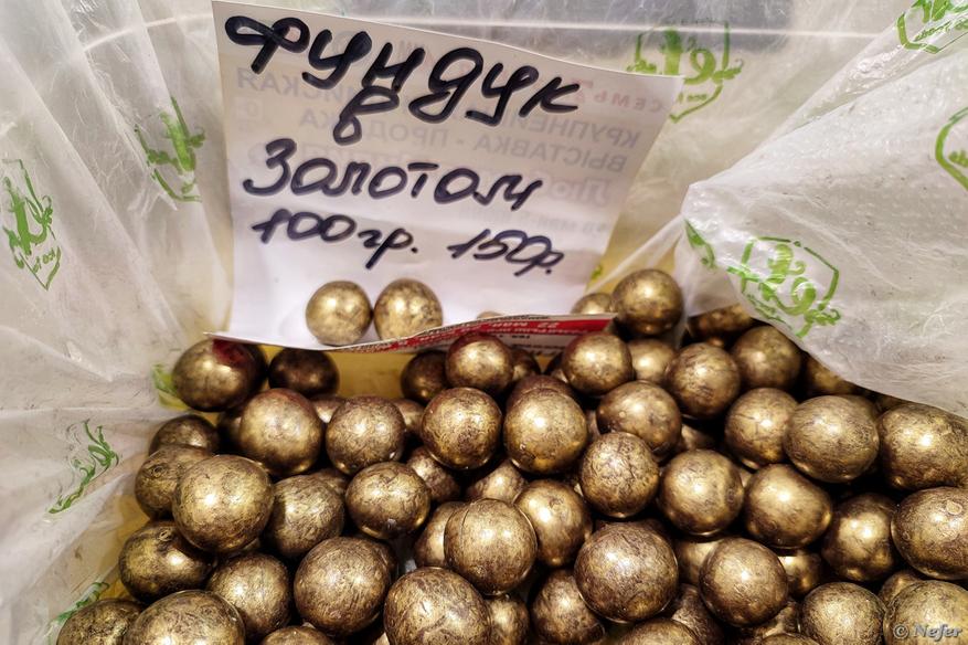 Наткнулась на распродажу лукума, не устояла. Коробочка стоит 300 рублей. К орехам я отношусь спокойнее. В шоколаде и йогурте пробовала, таких не видела ни разу. Тетушка, как на базаре, дает попробовать, тут же зачерпывает совок специй, сует под нос. Аромат непередаваемый, жаль, мне не надо.