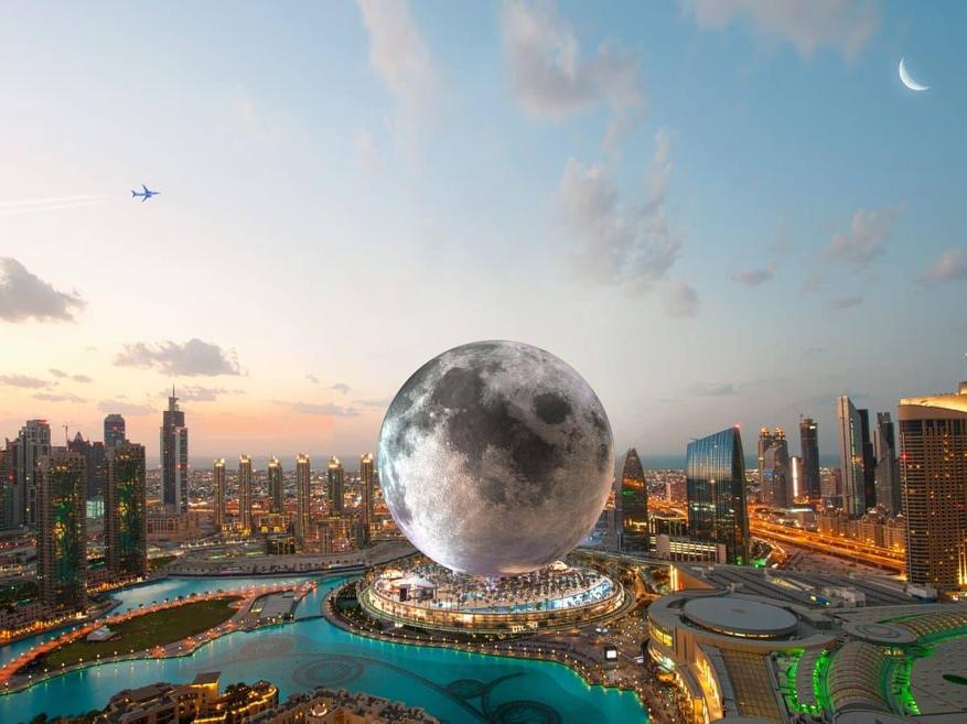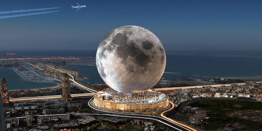 Архитектурные проекты в Дубае не перестают удивлять своей оригинальностью и размахом. Канадские архитекторы из Moon World Resorts Inc. представили необычный проект гостиницы в форме спутника Земли. Диаметр Луны будет равняться 200 метрам, высота 224 метра, а внутри будет размещаться парк для туристов на космическую тематику и 300 люксовых апартаментов.
