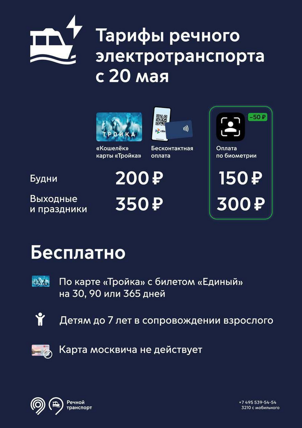 Ещё одно место, где с её помощью можно будет сэкономить — речные электроходы, которые за год освоили уже два маршрута. Тут цена при оплате биометрией не изменилась, а вот «Тройкой», банковской картой или через СБП с 20 мая нужно будет заплатить на 50 рублей больше. Особенно это заметно в «дешёвые» будни — стоимость проезда скакнула сразу на треть. И этим фактом будут разочарованы приезжие, решившие опробовать новый московский аттракцион. А вот для некоторых местных жителей даже подешевеет — теперь бесплатный «проплыв» положен не только по годовым и квартальным безлимитным проездным, но и таковые на 30 суток добавились. Не знаю, правда, насколько оно скажется, почему и говорю, что проезд подорожает в этот раз для всех — частный случай с одним экзотическим видом транспорта контраргументом не является.