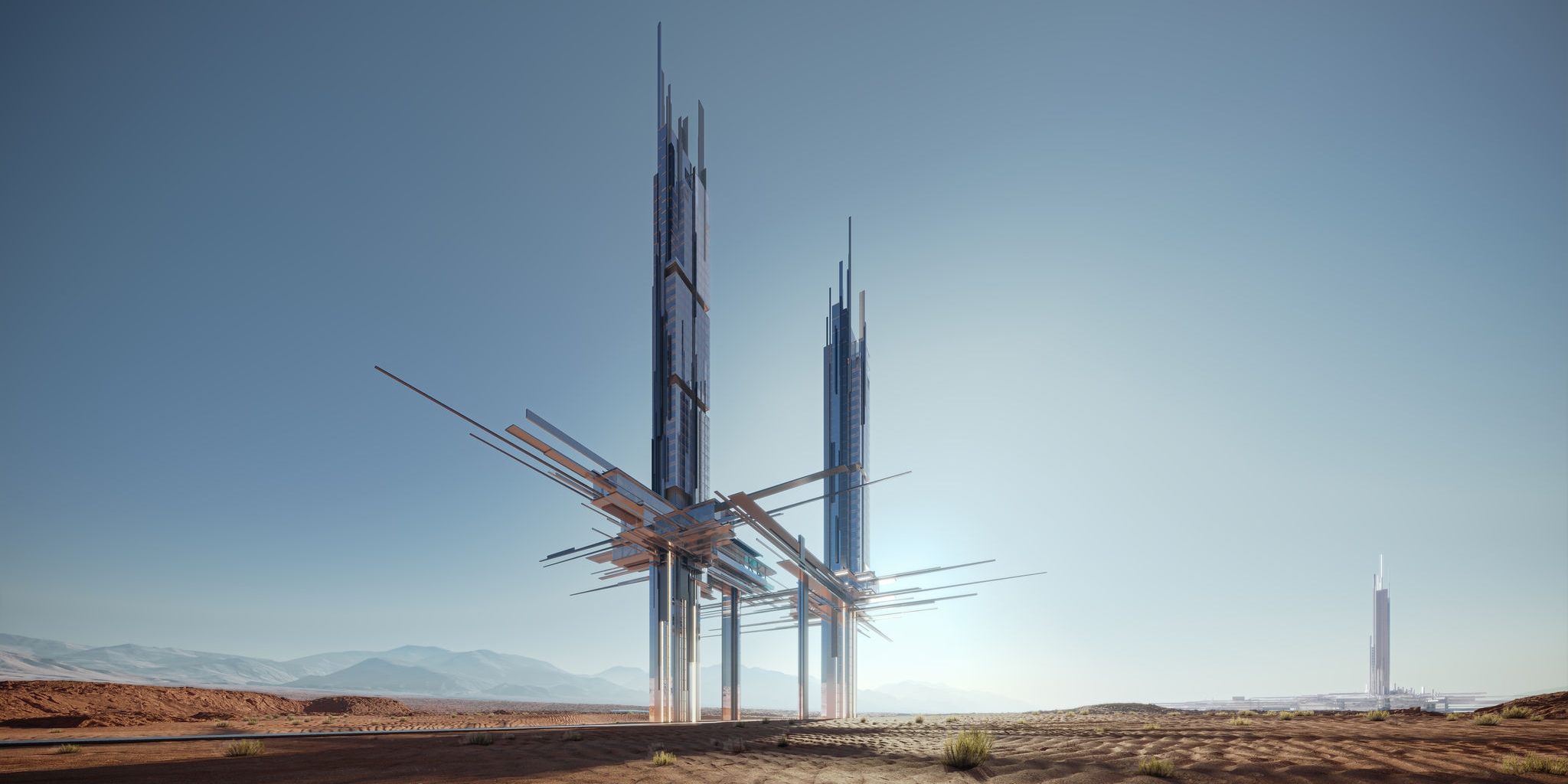 Футуристический проект NEOM Саудовской Аравии продолжает пополниться новыми элементами. Помимо урбанистических масштабных проектов (линейный небоскреб на 9 млн. жителей) в новой территории на побережье Красного моря уже строятся и разрабатываются новые туристические локации. Проект Epicon включает две связанные между собой башни высотой 275 и 225 метров, его планируют возвести на берегу залива Акаба в пустынной местности.