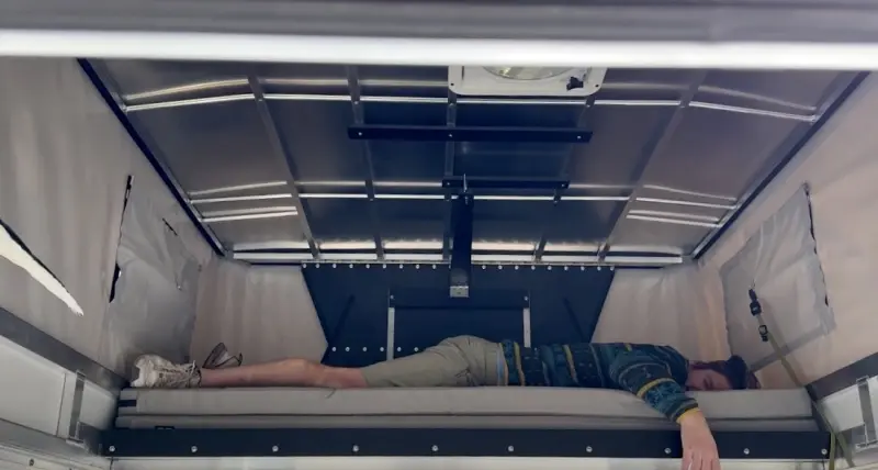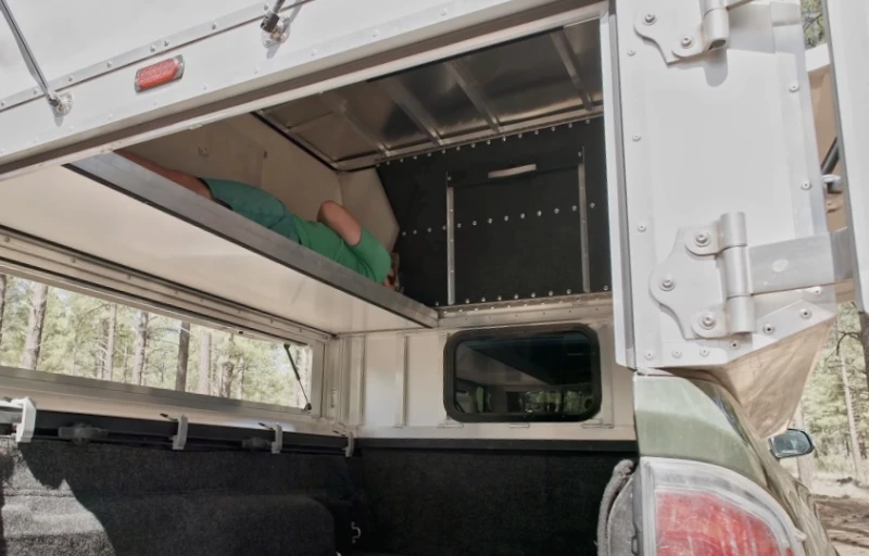 Расширенная конструкция позволяет разместить спальные места поперек кузова (с востока на запад), а не только вдоль, как в стандартных моделях. В полноразмерных пикапах внутренняя ширина достигает 75 дюймов (191 см), что обеспечивает спальное место размером 75x80 дюймов (191x203 см) — всего на дюйм меньше стандартной кровати «кинг-сайз». Это позволяет пассажирам ростом до 180 см комфортно спать поперек кузова.