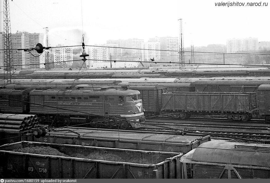 А минусом было заметное грузовое движение внутри города, где ему строго говоря делать нечего. Равно как и товарным станциям, в основной массе так и не вынесенным из центральной части города. Никто их там специально не строил — просто в конце позапрошлого века это были ещё глухие окраины, где строились и вокзалы, и грузовые дворы. Потом границы города шагнули дальше, потом ещё дальше — и началось активное перемещение грузов внутри него. В том числе, и транзитных — поскольку огромное количество маршрутов проходило именно через Москву. Так что какой-нибудь вагон из Минска в Свердловск, к примеру в 80-е заезжал сначала чуть ли не на Белорусский вокзал вместе с попутным поездом, потом перебрасывался в район Северянина, где прицеплялся к новому формирующемуся поезду — и из Москвы уезжал. Грузовой работой всегда старались заниматься ночью, но не всегда получалось, да и увеличивало время в пути для того же вагона. Поэтому, повторюсь, понаблюдать за проходящими товарняками можно было на многих станциях и внутри города, не говоря уже о пригороде.