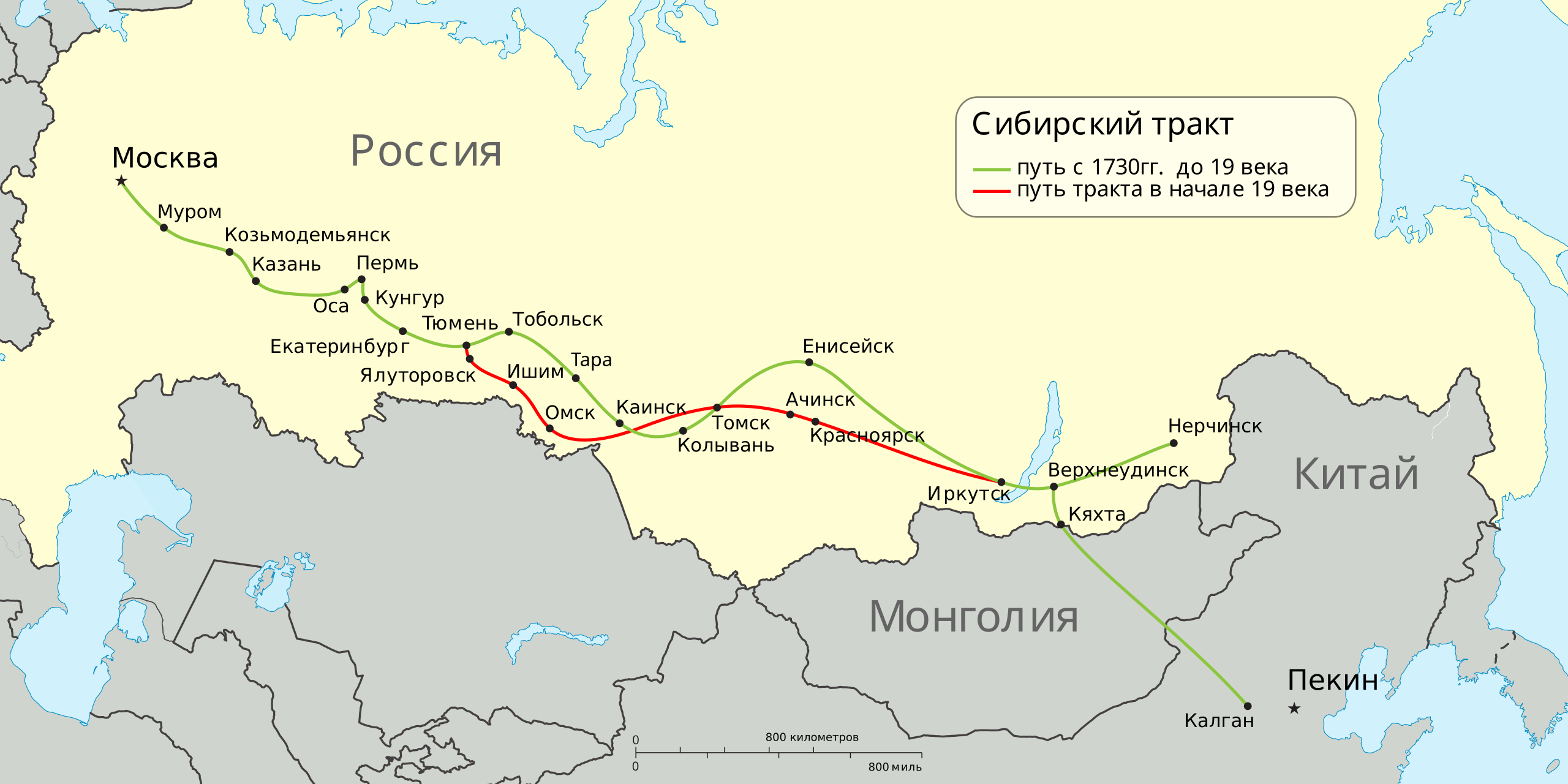 Начнем по хронологии. Непосредственно строительство Транссиба стартовало в 1891 году и завершилось в 1916-м, основной задачей было соединение центральной части России с ее дальневосточными регионами. Причем строили эту дорогу без участия иностранного капитала. Но как известно, нужная дорога не возникает на пустом месте, а там где целенаправленно перемещаются люди. И частично Транссиб повторял исторический водный/пешеходный/гужевой Сибирский тракт, который вел из центра России на Восток. Тракт подходил к Байкалу в Иркутске, это на южной части озера, далее были водные и ледяные переправы.