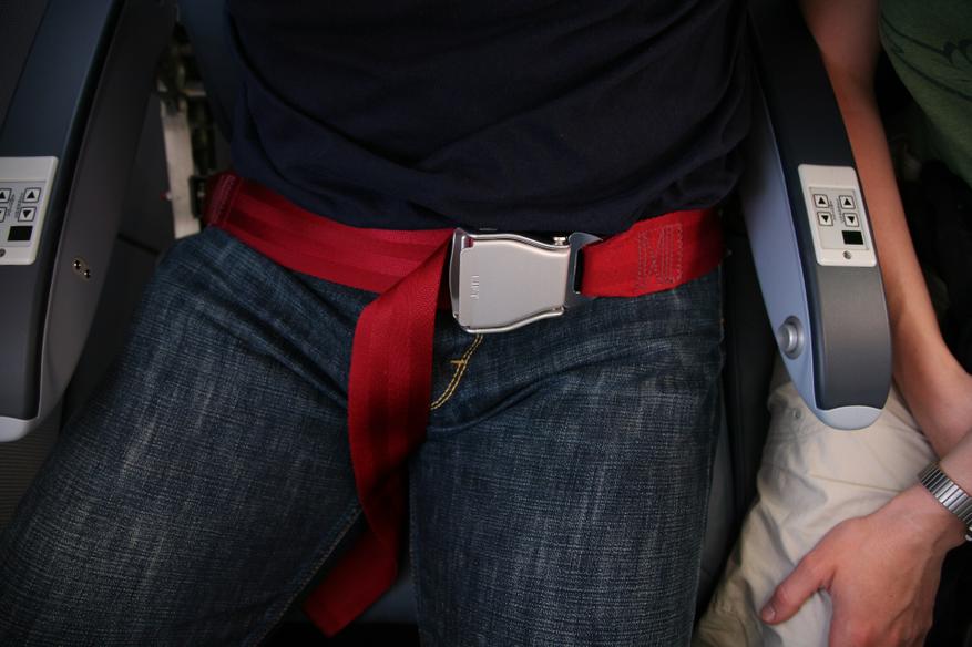 А потом мы оказываемся в самолёте — вершине инженерной мысли, где безопасность, казалось бы, возведена в абсолют, — и видим простенький поясной ремень с незамысловатой пряжкой. Никаких преднатяжителей, никакой фиксации грудной клетки.