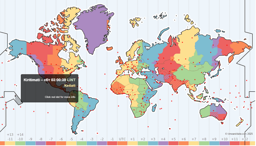 Но время на часах это не интересует. Для повседневной жизни политический часовой пояс важнее астрономии, поэтому формально первыми остаются острова Лайн вне зависимости от сезона.