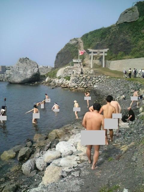 Интересно, что посещение Окиносимы строго ограничено даже и для мужчин. Им также попасть на Окиносиму непросто. На остров пускают лишь паломников-мужчин, не более двухсот человек, только 1 раз в год — 27 мая. Этот день связан с фестивалем, посвящённым морякам, погибшим в морской битве в районе острова Цусима во время Русско-японской войны. Перед высадкой на остров мужчины обязаны проходить ритуал очищения, который включает омовение в море в обнажённом виде. Паломники должны отказаться от одежды в течение пребывания на острове, ничего не брать с собой с острова и не разглашать детали своего визита. Эти строгие правила подчёркивают сакральность места и направлены на сохранение его духовной чистоты.