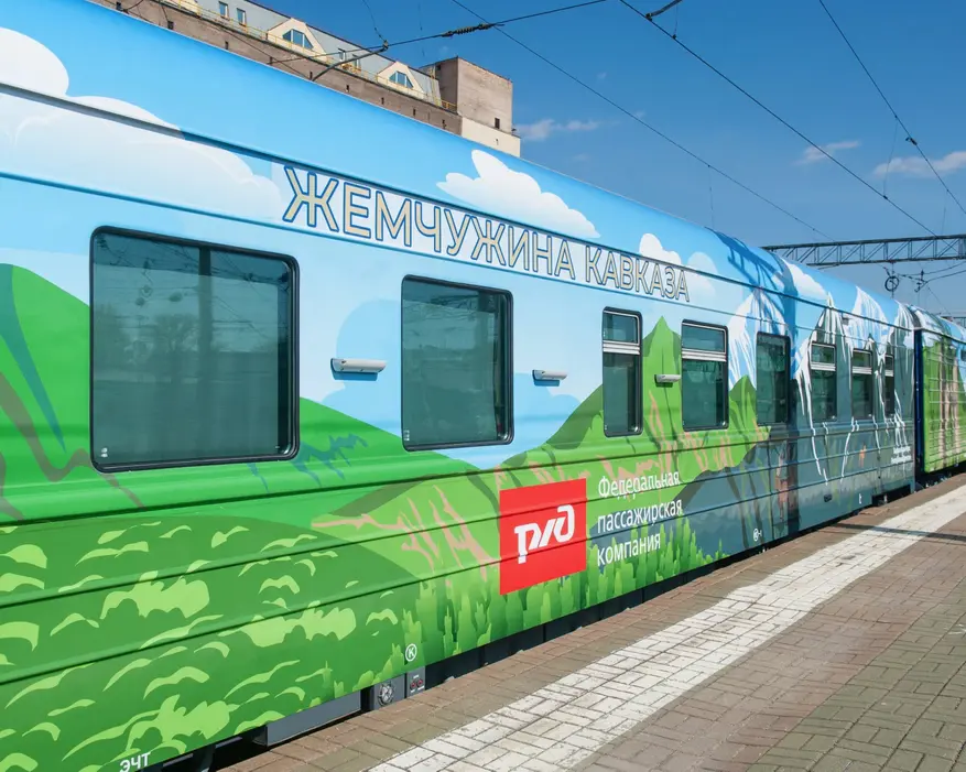 РЖД (Российские железные дороги) уже запустили свой обновленный поезд под названием «Жемчужина Кавказа», который отправляется из Москвы в ряд кавказских городов. Также уже 8 мая состав должен впервые отправиться в путь из города Тюмень. Главной особенностью состава стала СПА-зона с инфракрасной сауной вместимостью до 7 человек, душем и множеством других удобств.