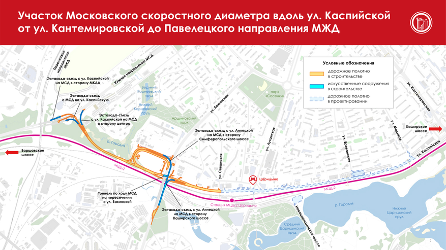 Кстати, над улучшением связки с М-4 сейчас активно работают. Пунктир в пределах МКАД появился не на пустом месте. Изначально были планы немного сэкономить, пустив МСД по Кантемировской улице совместно с ЮР. Однако такое решение мало того, что приводило бы к перепробегу в пару километров, так и вообще серьёзно замедляло бы поток. Часть которого неминуемо уходила бы на Липецкую улицу («исток» М-4), а в Царицыно транспортная обстановка и без того та ещё.