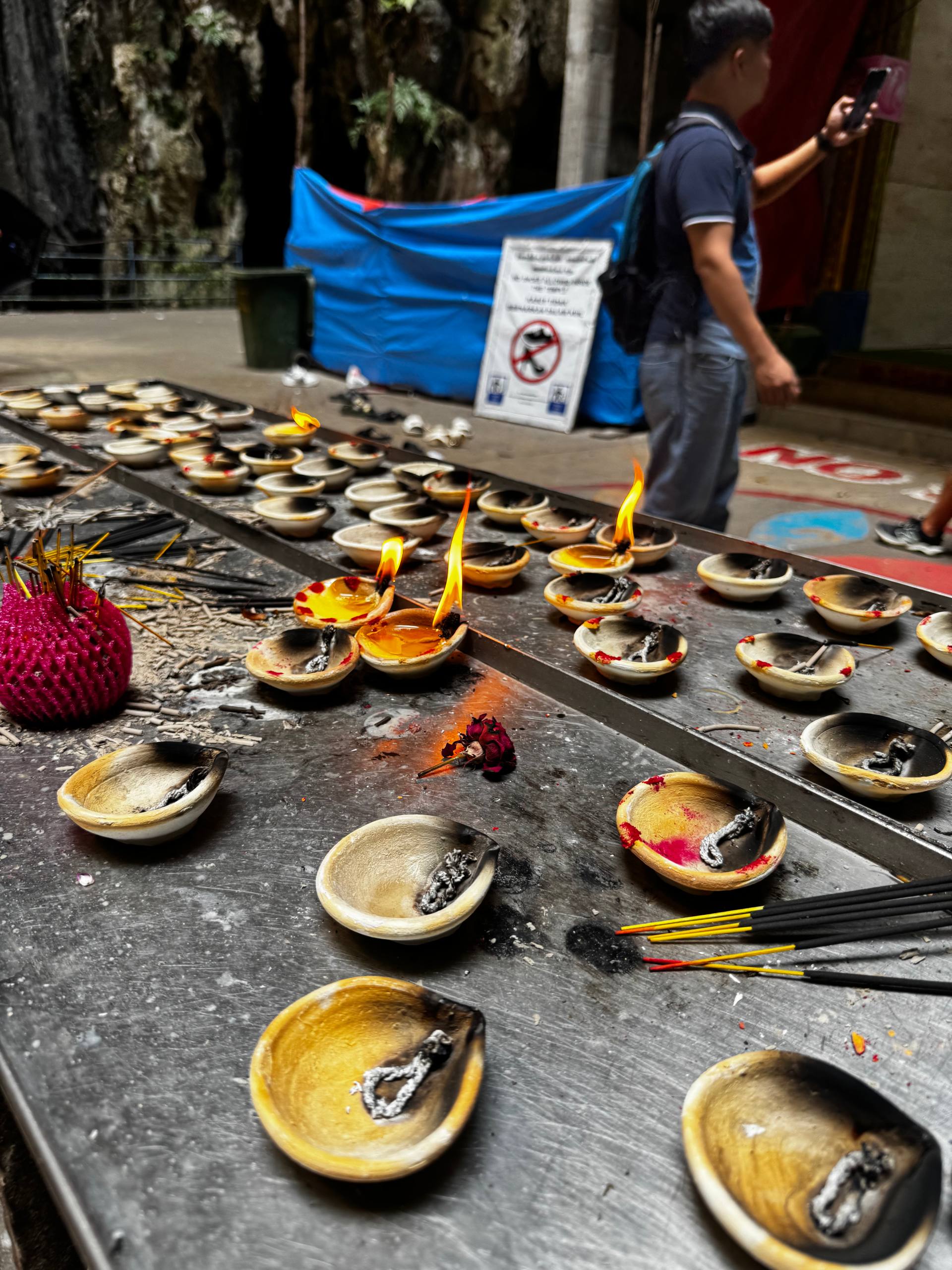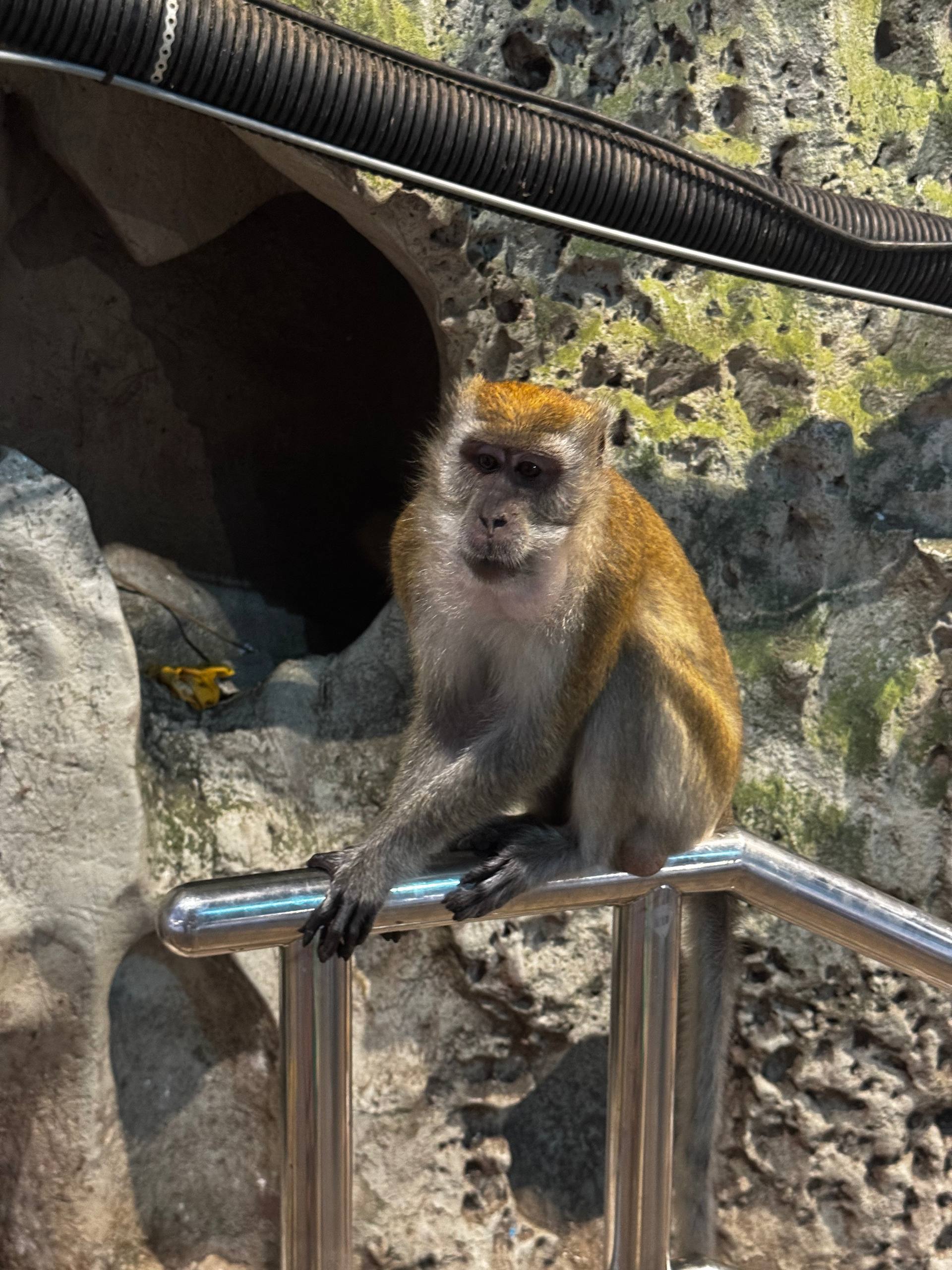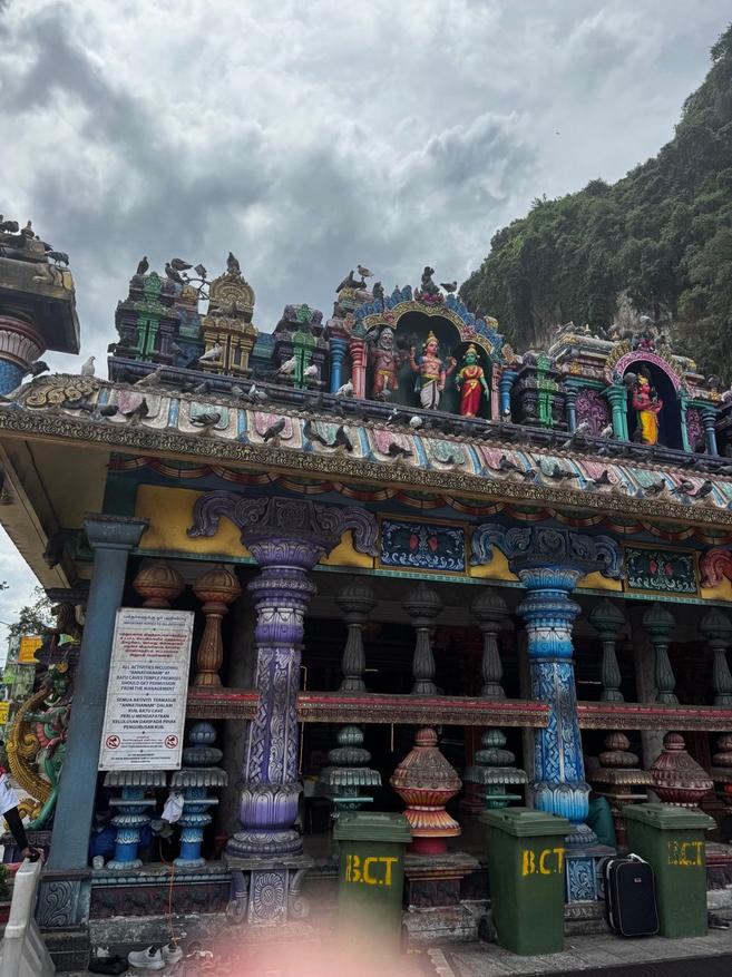 Есть места, которые выглядят как декорации к фильму, но при этом остаются абсолютно реальными. Бату-Кейвс как раз из таких. Огромная известняковая гора, изъеденная пещерами. Внизу город, шум машин, линии метро. Чуть выше: храмы, божества, запах благовоний и длинная лестница, уходящая в темноту и свет одновременно, вглубь камня и в небо. И странное ощущение, ты вроде бы на туристическом объекте, но это не «аттракцион». Это живое место. Люди приходят молиться, кто-то просто проходит мимо, обезьяны воруют еду, слышны мантры, дымятся благовония, монахи в оранжевых одеждах тихо сидят в тени. Всё перемешано: религия, быт, хаос, тропический зной. Ничего специально не вылизано, не приглажено под открытку. Оно просто существует. И, наверное, в этом вся сила Бату-Кейвс.