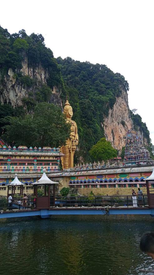 У подножия гигантской статуи Муругана расположен вход в храмовый комплекс Бату-Кейвс. Основные святыни находятся в Соборной пещере (Temple Cave) наверху, а рядом, у основания скалы, расположен отдельный храмово-пещерный комплекс Рамаяна с храмом и статуей Ханумана. Все эти объекты образуют единое действующее индуистское священное пространство.