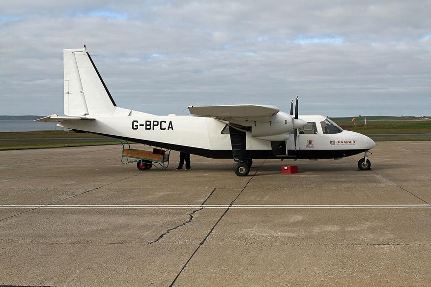 Перевозку пассажиров на этом маршруте выполняет шотландская авиакомпания Loganair на маленьком самолете Britten-Norman Islander, на борту которого всего восемь мест.