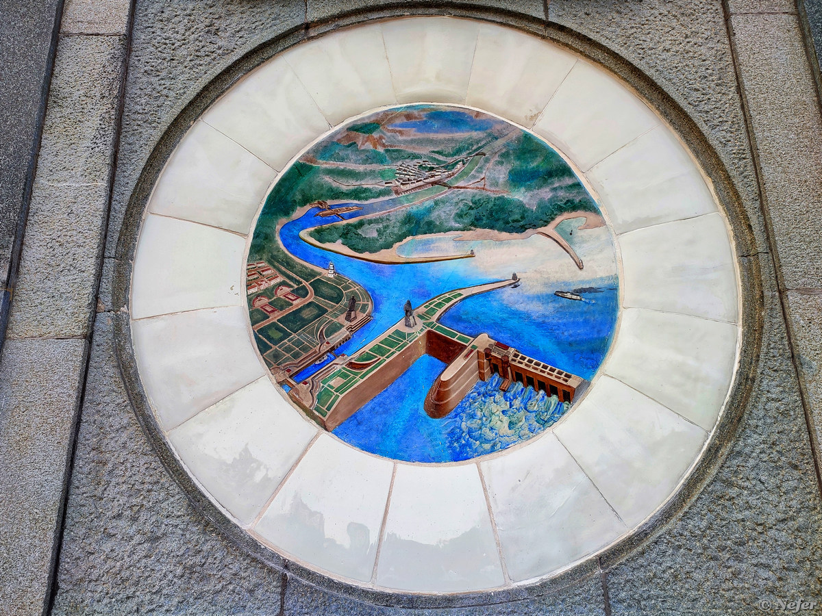 Знаменитые фарфоровые медальоны на фасаде. Они расположены с обеих сторон здания и посвящены значимым событиям советской истории. На одном из медальонов изображен неосуществленный проект - Дворец Советов, который планировали построить на месте снесенного Храма Христа Спасителя.