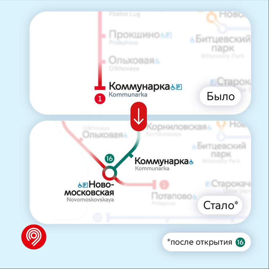 Точнее, не от «Коммунарки» — которую я неспроста назвал выше бывшей. Бывшую «Коммунарку» Сокольнической линии и будущую Троицкой 5 июля переименовали в «Новомосковскую» — до которой и пойдёт второй участок. Пользуясь случаем «Бачуринской» вернули название «Коммунарка» — которое она и носила в ранних проектах. Обоснование-то простое — она и правда ближе к историческому посёлку. На деле, конечно, можно было просто «Столбово» два раза не переименовывать, сохранив для этого ТПУ первое проектное название, но в Москве простых путей никогда не искали (а также не верили слезам и били с носка :)).