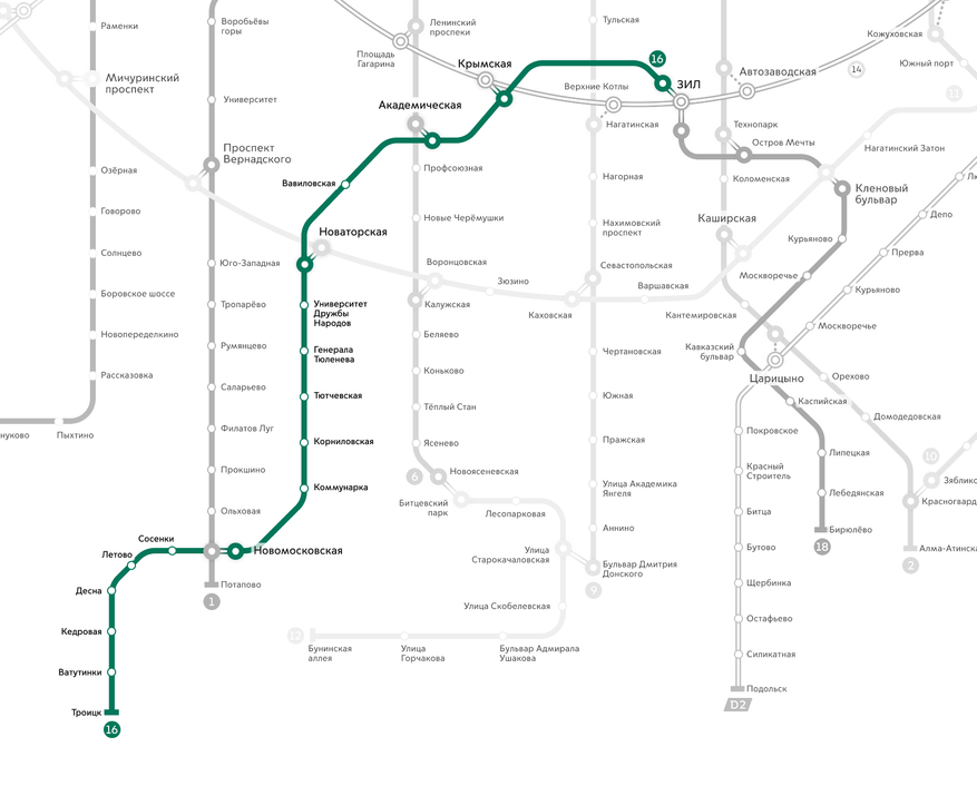 По названию понятно, что придёт она со временем в город Троицк — центр новых территорий, причём Троицкий* административный округ со «старыми» территориями вообще нигде не граничит. А по первым проектам называлась линия Коммунарской — посёлок Коммунарка тоже расположен за МКАД вне старых границ города. Почему, собственно, иногда и говорят, что это в чистом виде «метро в Новую Москву». На самом деле нет. И вообще не всё так просто. Планы и перспективы — одно. Тем более, что от их реализации сильно полегчает и некоторым станциям в «старой» Москве. Но открывающиеся в первую очередь и сами по себе именно в ней. И некоторые расположены там, где метро ждут уже 40 лет, а то и больше. А что со временем появится опора рельсового каркаса новых территорий вдоль Калужского шоссе… так без этого и их освоение, по-хорошему, невозможно. И вообще проблемы этого направления стали московскими задолго до того, как Троицк и его окрестности официально вошли в границы Москвы. По Калужке именно городские автобусы ходили неспроста ещё полвека назад, когда эти территории формально оставались областными и о глобальном расширении Москвы никто не заикался.