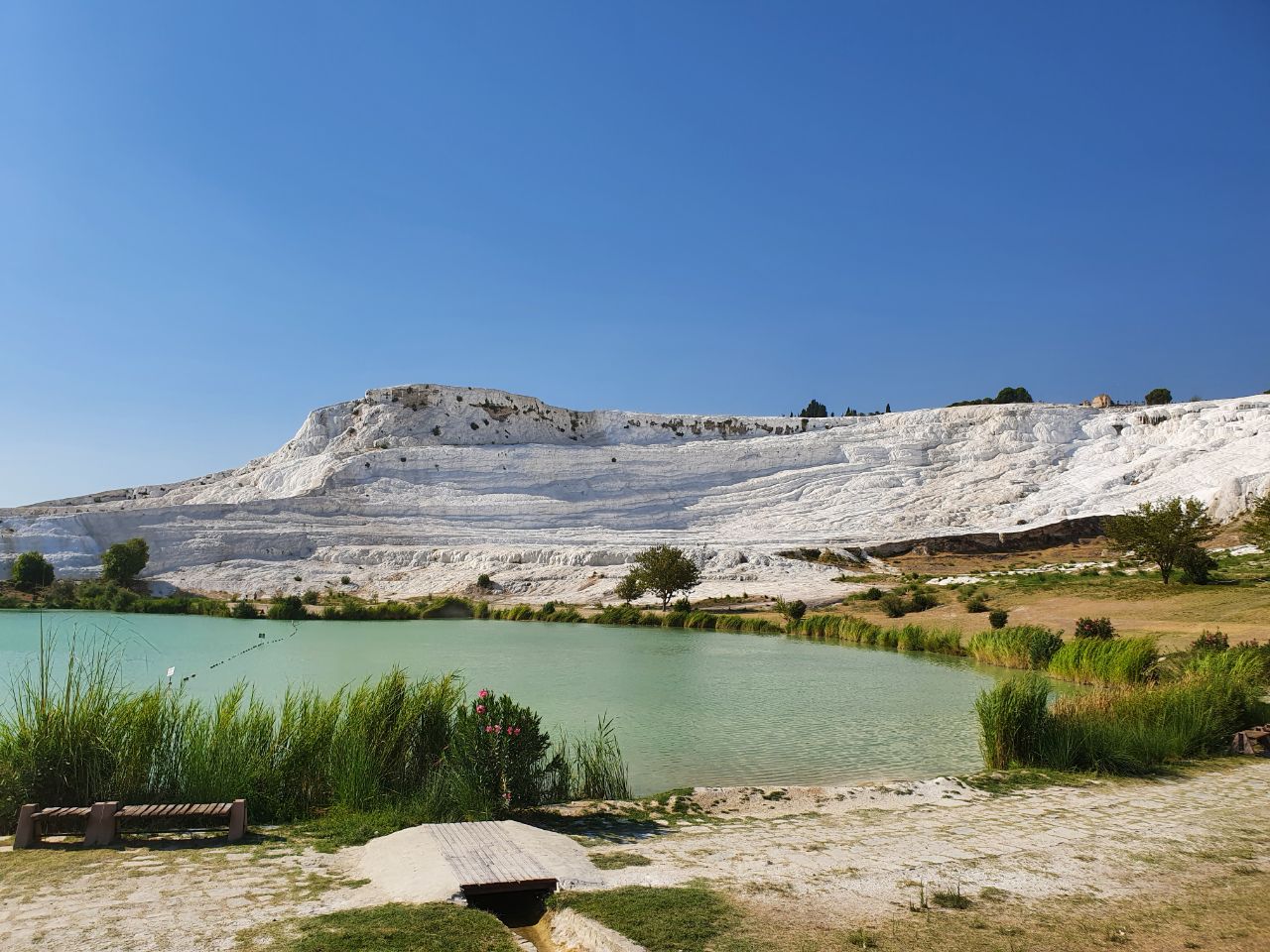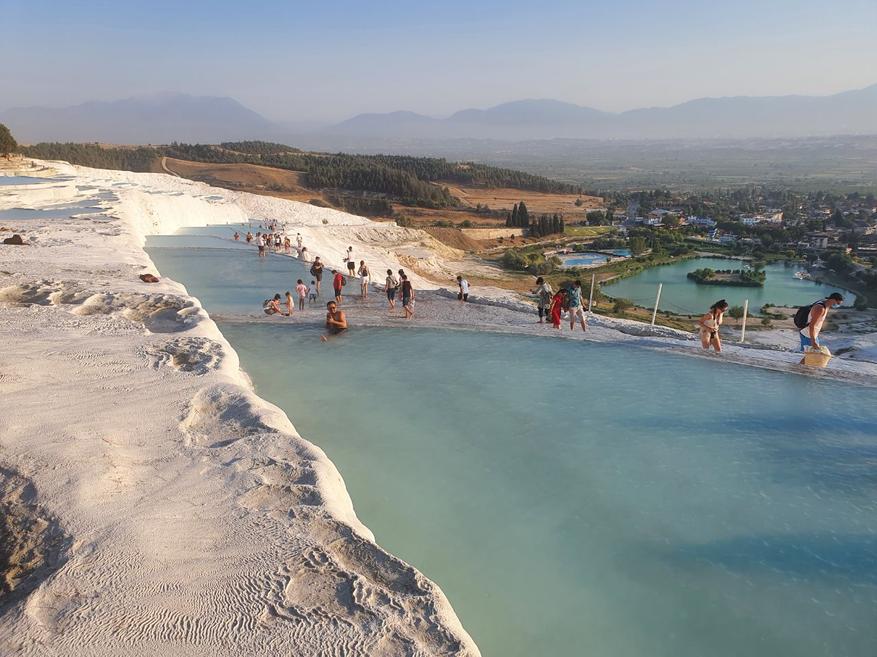Помимо того, что это очень красиво, здесь ещё очень много небольших бассейнов, в которых можно искупаться. Таким образом, есть возможность освежиться в любой момент прогулки и осмотра травертин (именно так называются эти известняковые террасы)