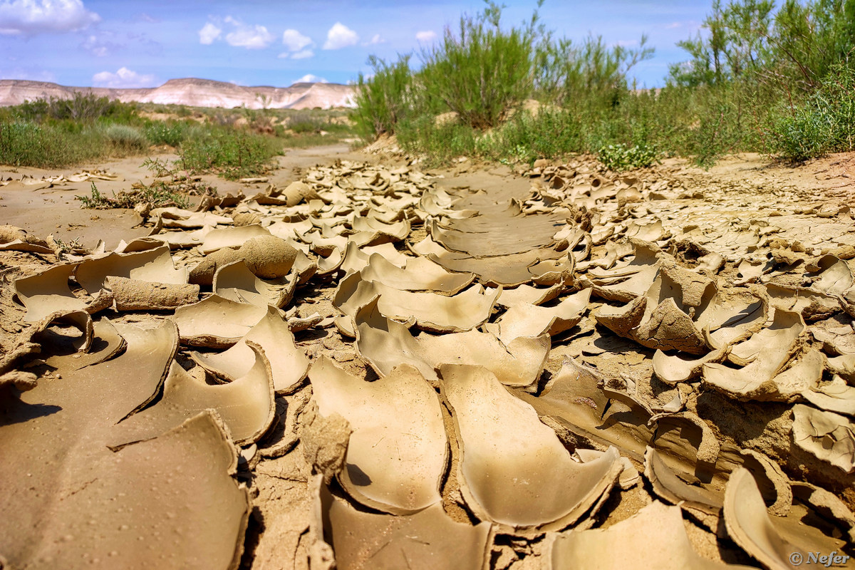 Дно древнего океана Тетис. Невероятные ощущения! Покрытие глинистое, по большей части высохшее, так что идти вполне комфортно. На Тузбаире часто возникают миражи. Кажется, что впереди вода, идешь, идешь, а она будто отодвигается. Уже километр прошел, ноги увязают в глине и вроде осталось совсем чуть-чуть, но это ощущение обманчиво.
