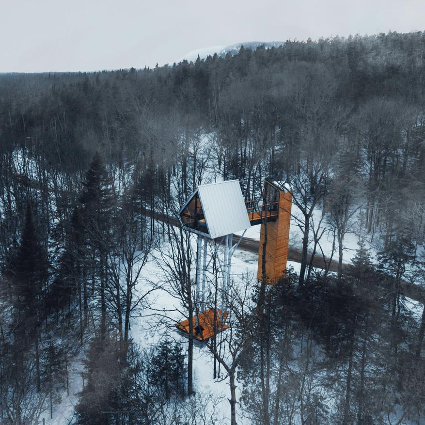 В Канаде приставили уникальный мини отель с интересным дизайном. Дом был построен для богатых одиноких людей, которые любят проводить время наедине с собой слушая звуки природы и наслаждаясь прекрасным видом. Дом получил название «Сова*». Внутри у него минимум деталей, а по внешнему виду дом напоминает обычный шалаш на длинных ногах высотой 10 метров. Выполнен он из дерева и стали. Внутри находится большое панорамное окно, с которого открывается потрясающий вид на живописную природу и речку.