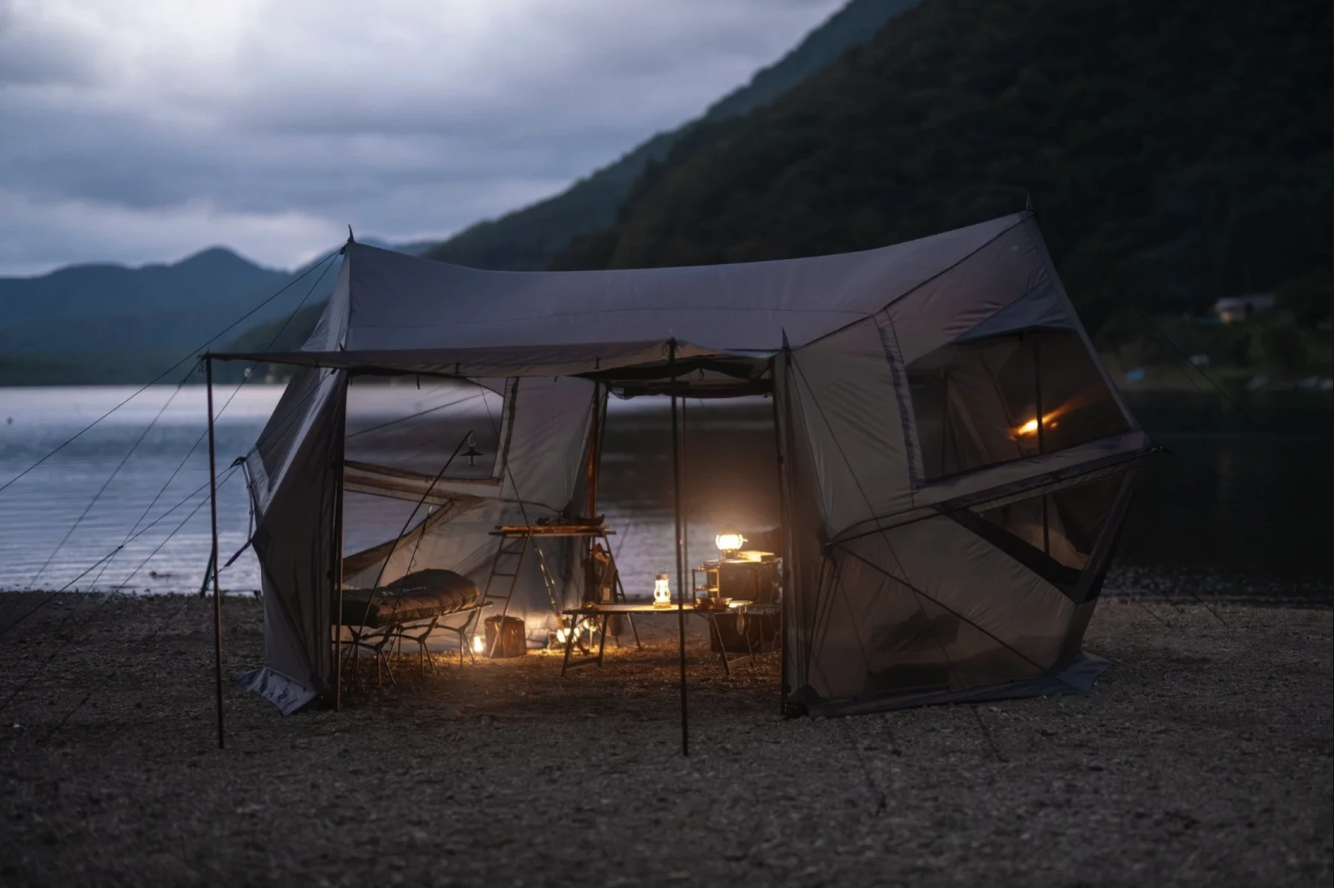 Палатка Grayhus, впервые представленная в Японии в 2024 году, имеет многогранную геодезическую конструкцию, которая позволяет добиться сферической формы. Такая конструкция была выбрана для увеличения внутреннего объёма при сохранении стандартной площади основания, рассчитанной на место для кемпинга размером 10 на 10 метров.
