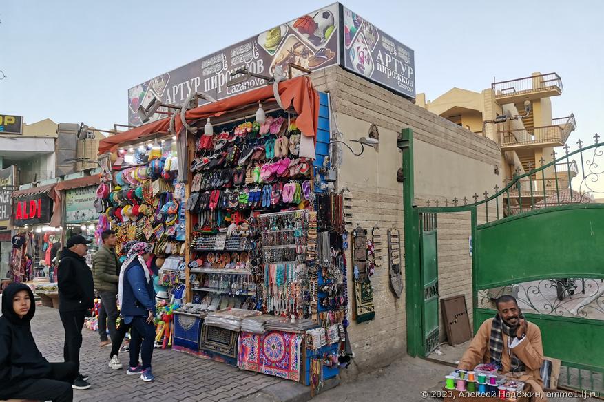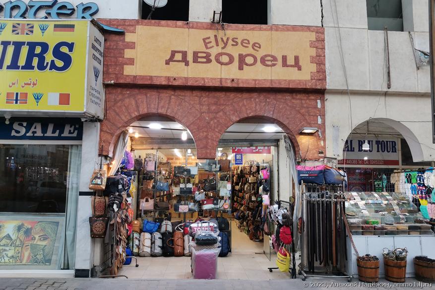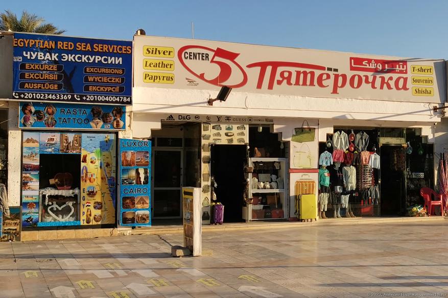 Магазинов с подобными названиями в Хургаде сотни, при этом есть и названия, ориентированные на немецких туристов (Lidl, например), но русских больше всего.