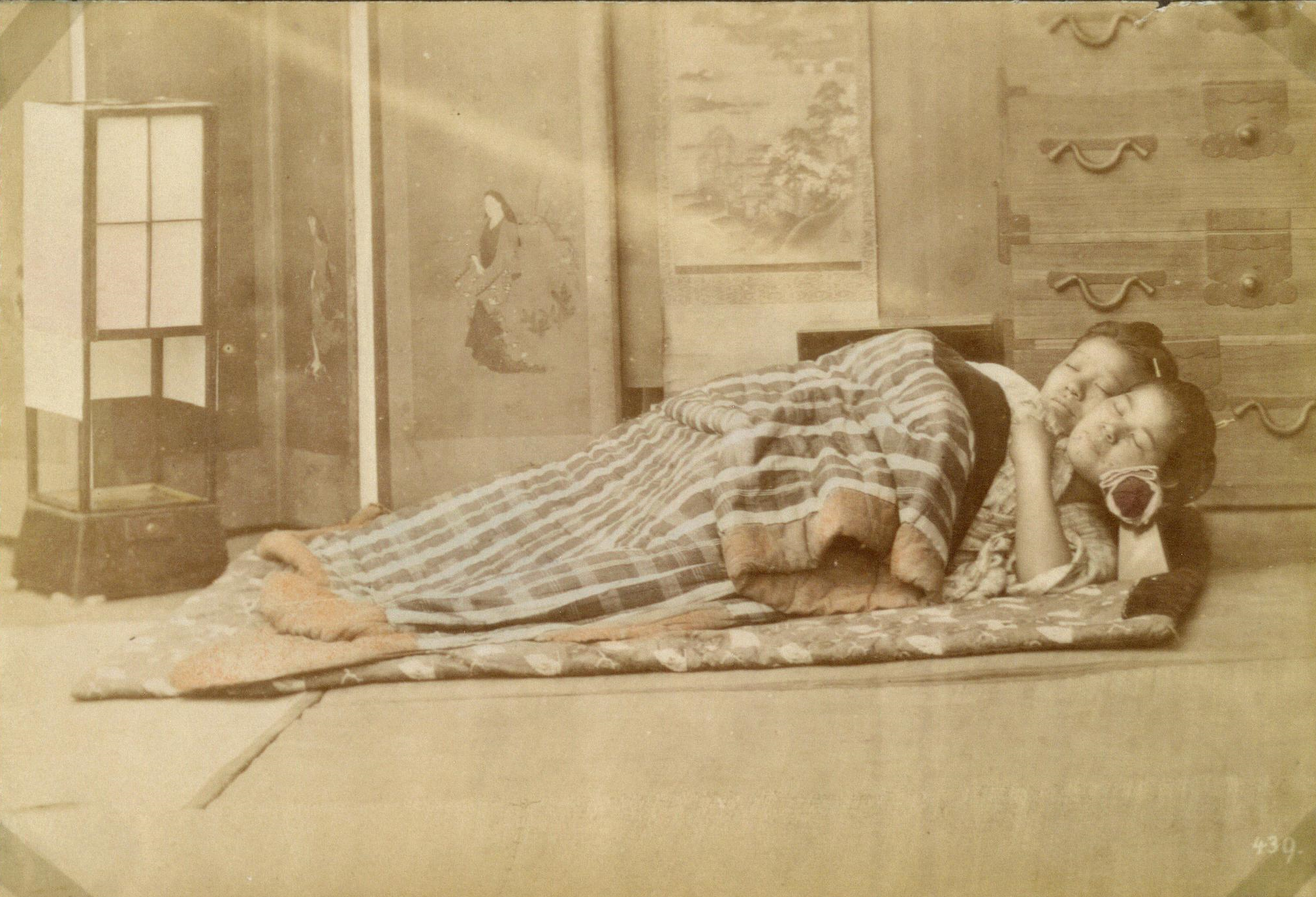 Источник: https://commons.m.wikimedia.org/wiki/File:Makura_(”The_Wooden_Pillow”)_Sleeping_women_with_their_heads_on_the_makura,_Japan._(10796940084).jpg
