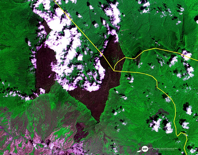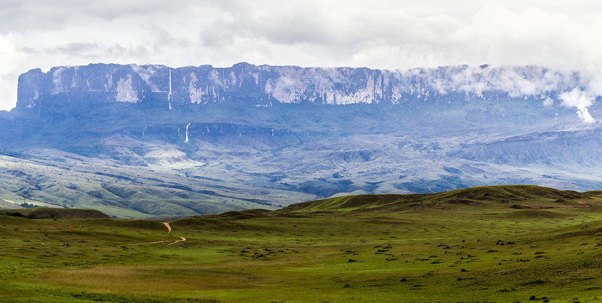 Столовая гора (тепуи) Рорайма находится большей частью на территории Венесуэлы, хотя там рядом сходятся границы Гайаны и Бразилии. И все это на 34 квадратных километра плато сложной формы. В этом же районе находится истоки рек бассейнов Амазонки и Ориноко. И знаменитый водопад Анхель (высотой один километр) находится в 200 км от этого места.