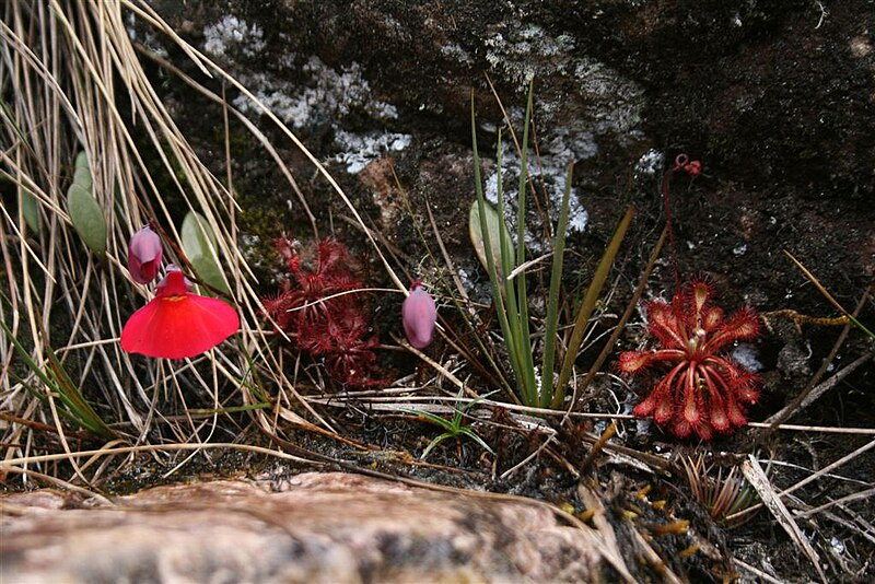 Множество растений в этой местности взаимодействуют с микроорганизмами или питаются насекомыми (росянка Рораймская), поскольку причина такой плотоядности довольно проста — почва скалистой горы бедна минеральными веществами, которые вымываются регулярными дождями (постоянный спутник таких гор — облака).