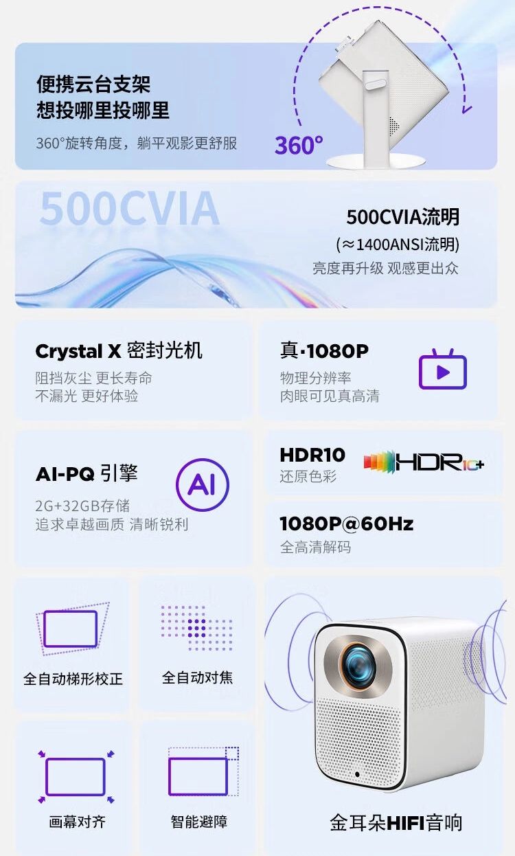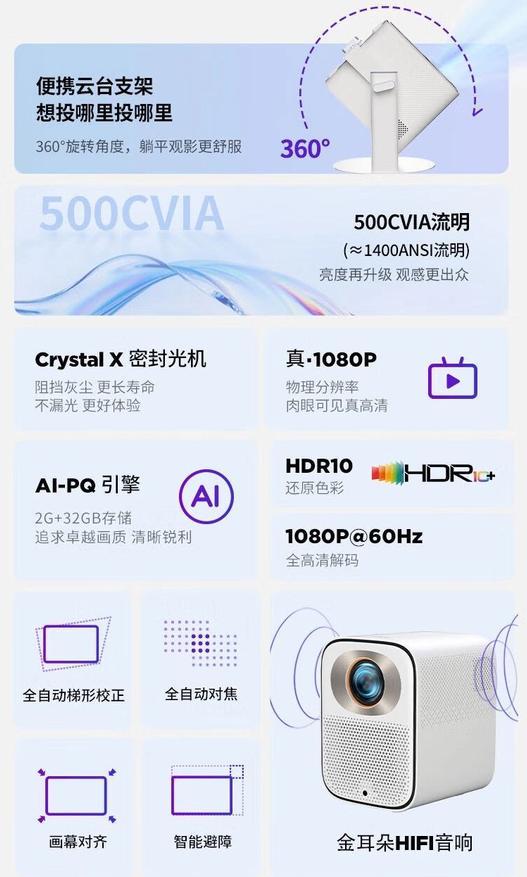 Компания Lenovo представила на рынке свой новый продукт — компактный домашний проектор под названием Xiaoxin 100GT. Устройство оснащено оптической системе Crystal X Full HD собственной разработки, функциями ИИ для адаптации изображения, Hi-Fi, штативом с поворотом на 360 градусов и предлагает яркость в 500 CVIA люмен, что соответствует 1400 ANSI люмен.