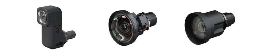 Главной особенностью ZUH12000 стала система сменных объективов — впервые в серии Z от Fujifilm. На момент запуска доступны три варианта оптики. Сверхкороткофокусный объектив FP-ZL034 с коэффициентом проекции 0,34-0,41 оснащён поворотным механизмом: корпус вращается на 90 градусов, а головка — на 360 градусов, что позволяет направлять изображение на стены, потолки и полы без перемещения проектора. Короткофокусный объектив FP-ZL050 с коэффициентом 0,5-0,65 предназначен для работы в ограниченном пространстве. Стандартный объектив FP-ZL125 с коэффициентом 1,25-2,0 рассчитан на установку в задней части больших залов.