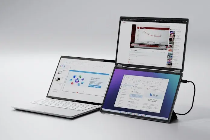 На международной компьютерной выставке в Тайбэе Asus представили портативный складной монитор ZenScreen Duo OLED MQ149CD с двойным экраном, цельнометаллическим корпусом и режимом «палатки»