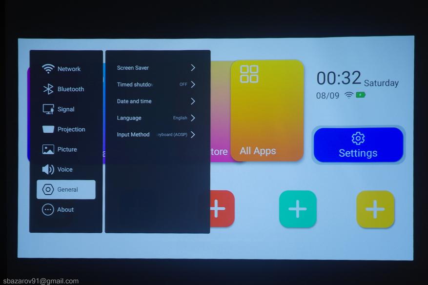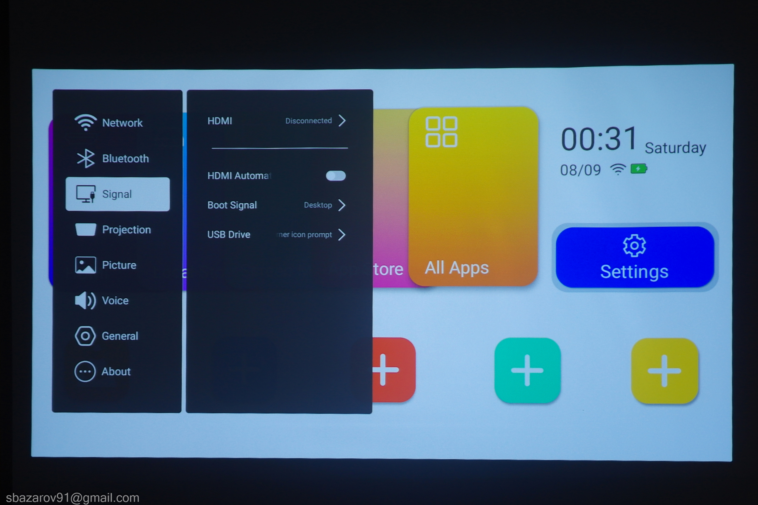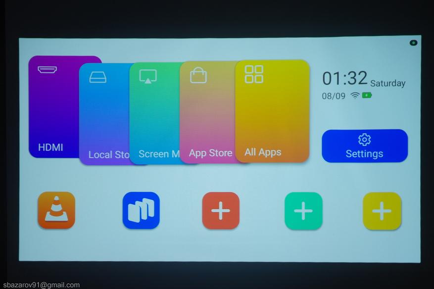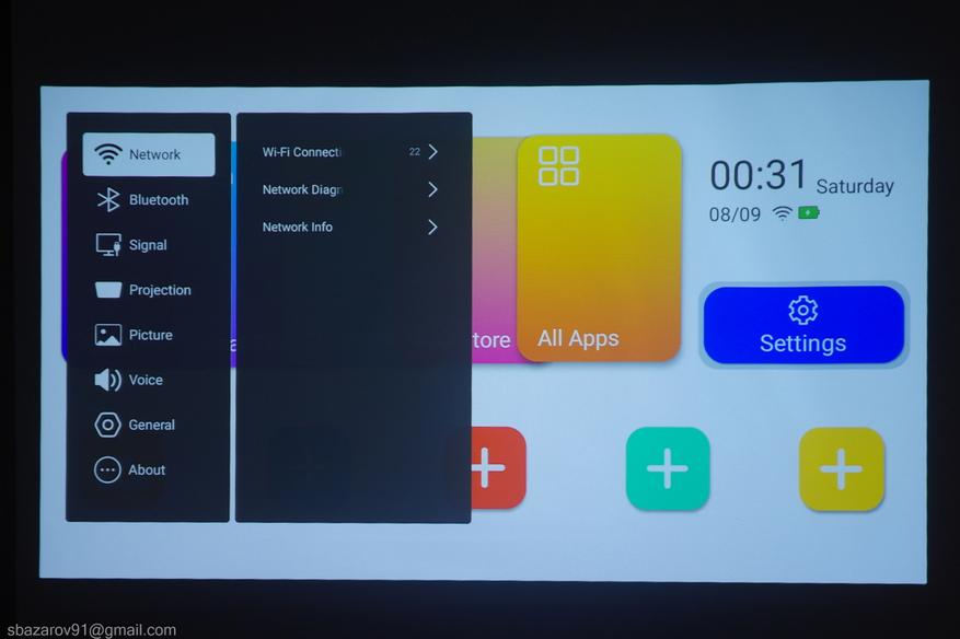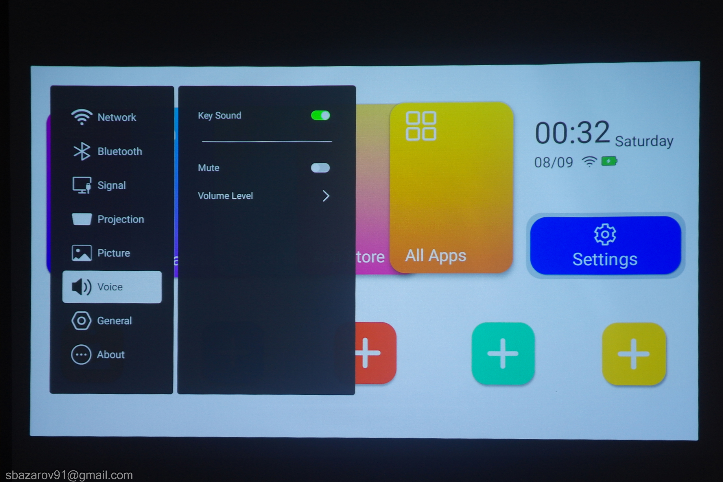 Как итог, несмотря на емкий аккумулятор на 9000 мАxч, время работы не утешительное — около 2 часов и это на минимальной яркости. Если же стоит задача посмотреть любимый фильм где-то на природе, то заряда хватит с лихвой! На максимальной яркости проектор способен проработать не более 20-25 минут.