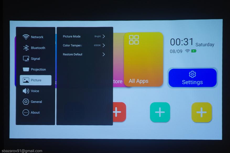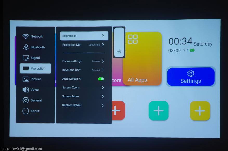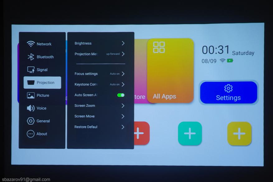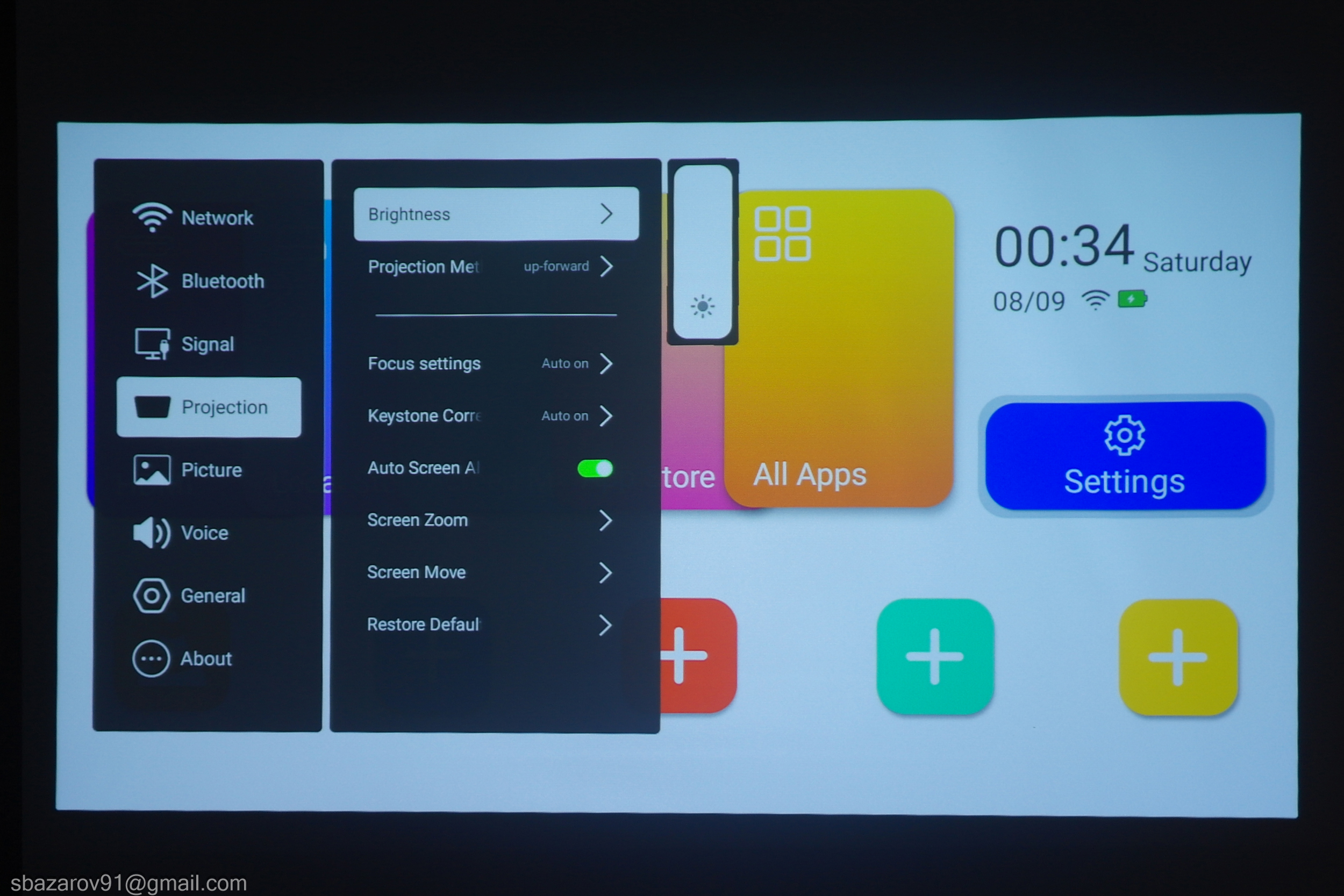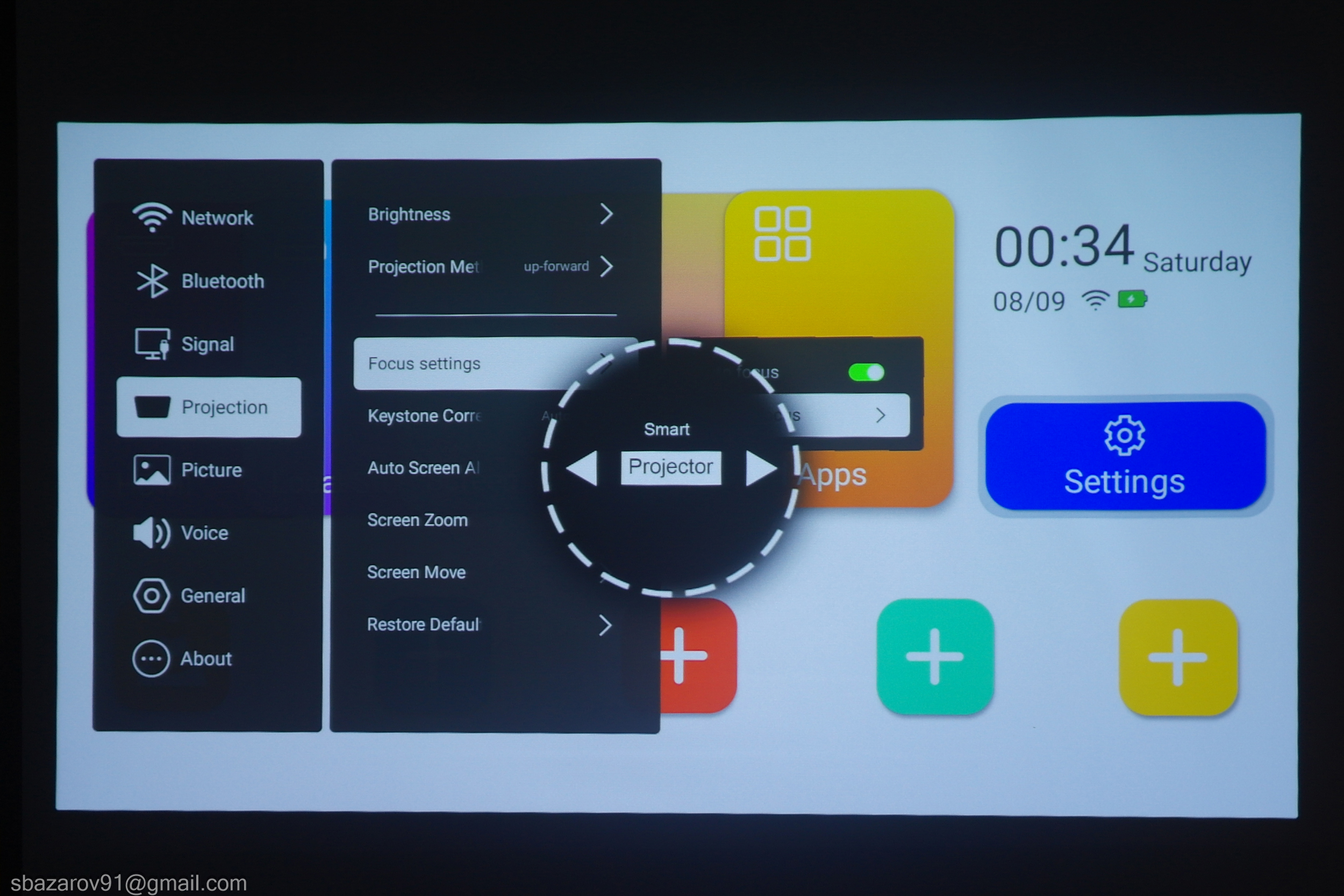 Делается это не так тщательно, как в том же Voxflix M25 и куче других проекторов, однако спасает автоматическая фокусировка, которая работает выше всяких похвал и в любом месте.