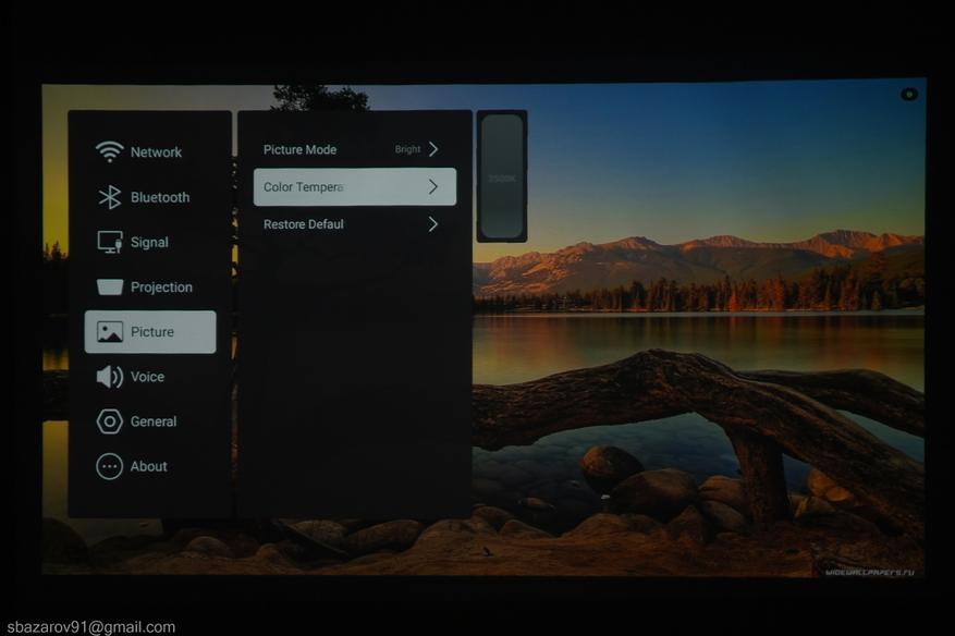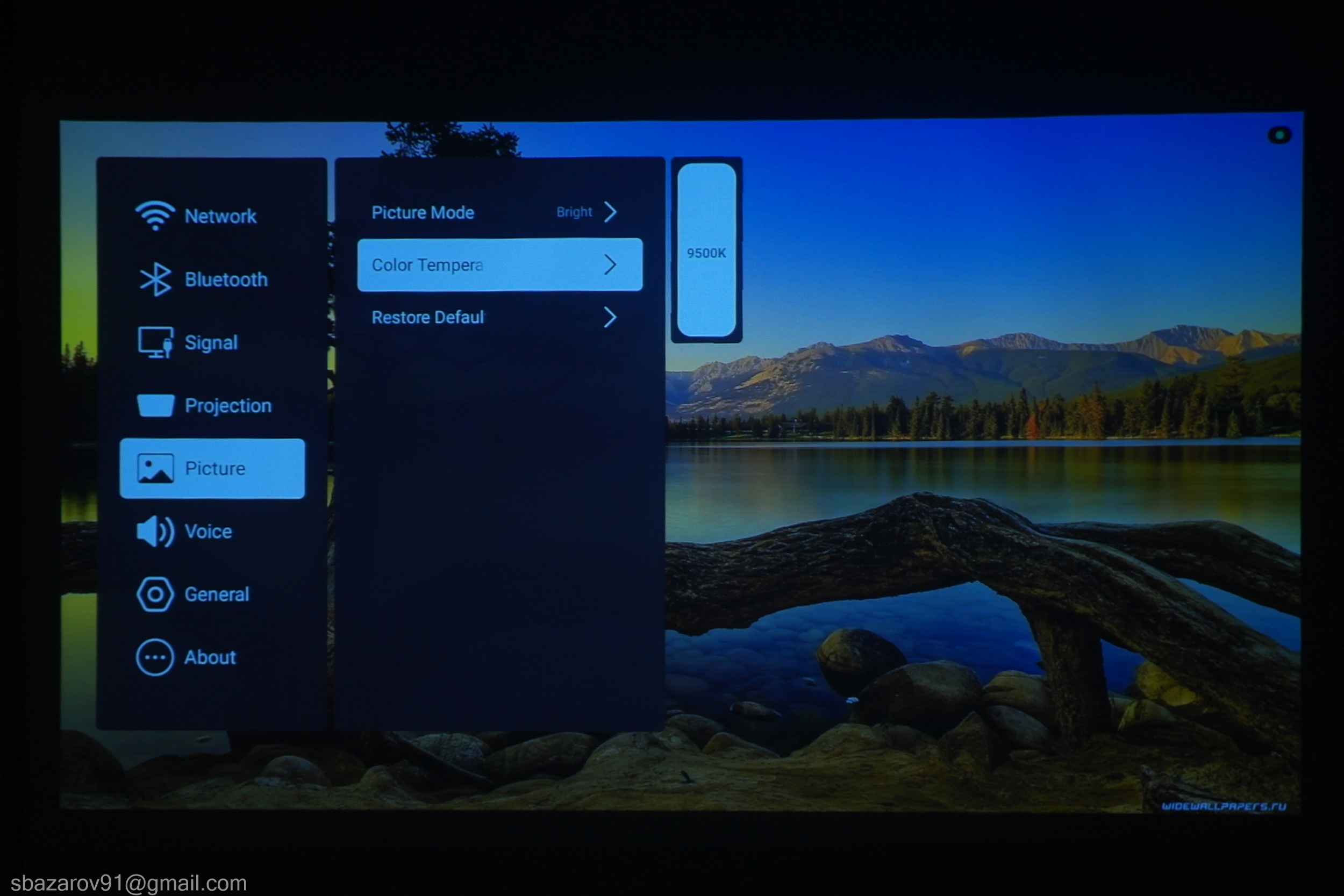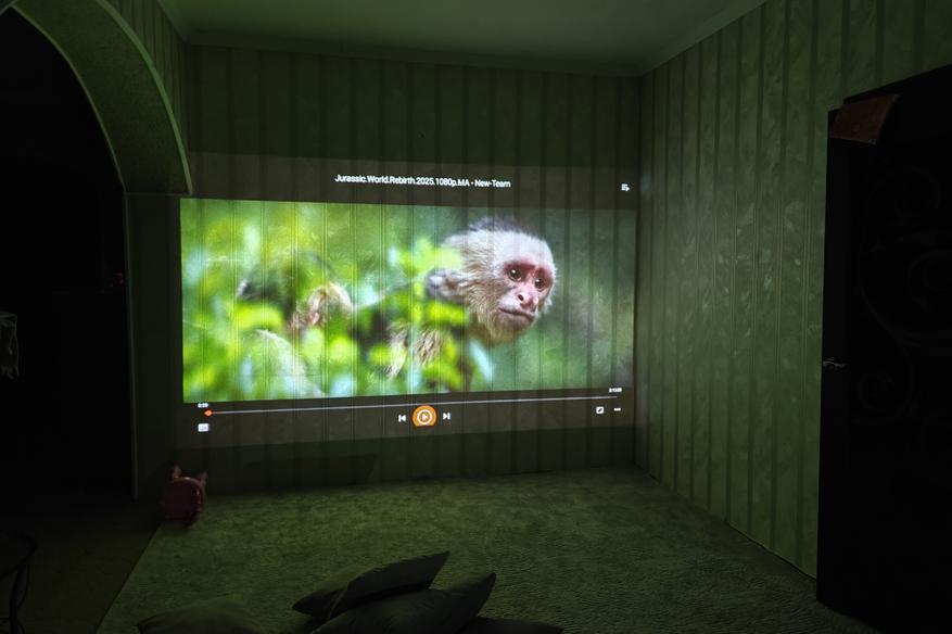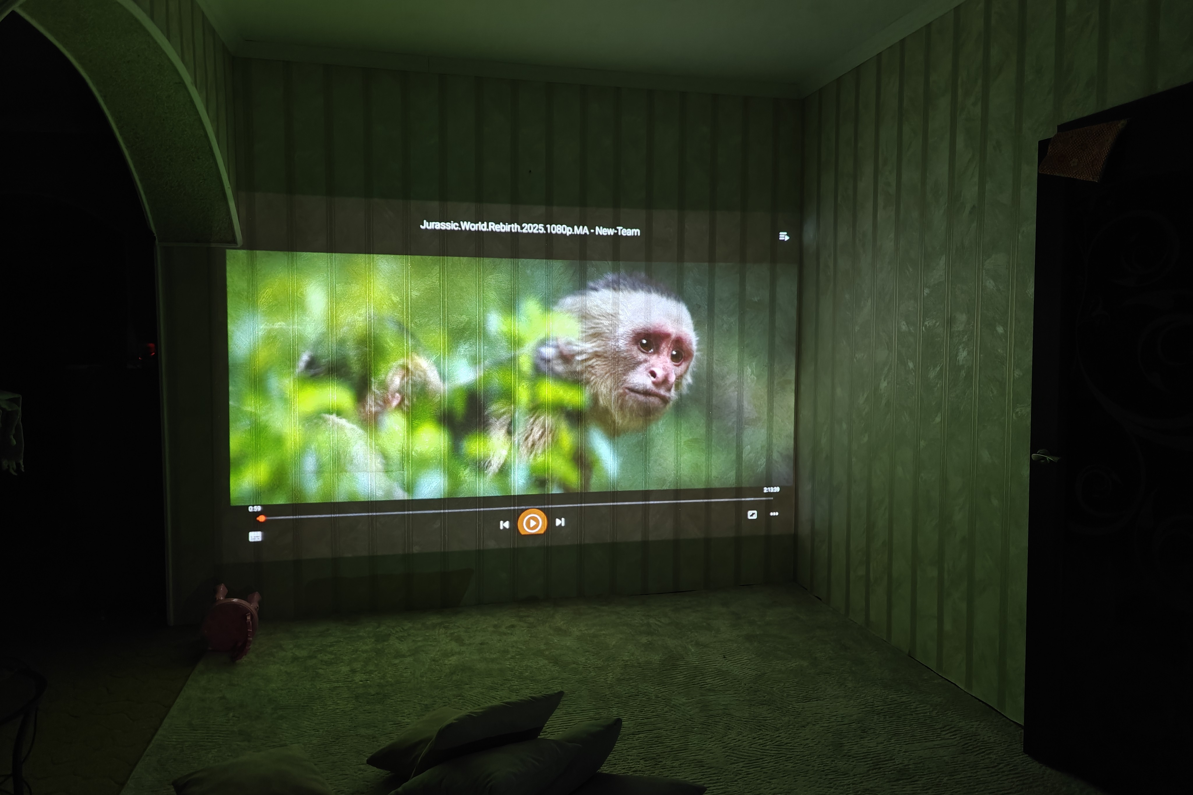 При первом включении Jenovox M5000 mini показался мне довольно тусклым. Изображение было не такое яркое, как я привык видеть в моем основном проекторе Voxflix M25 (1LCD) с честной яркостью 750 ANSI-люмен.
