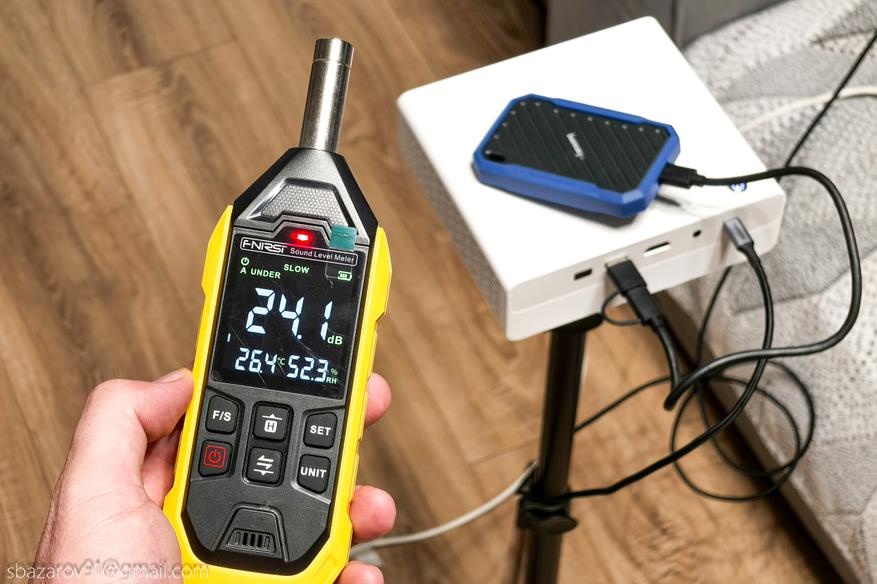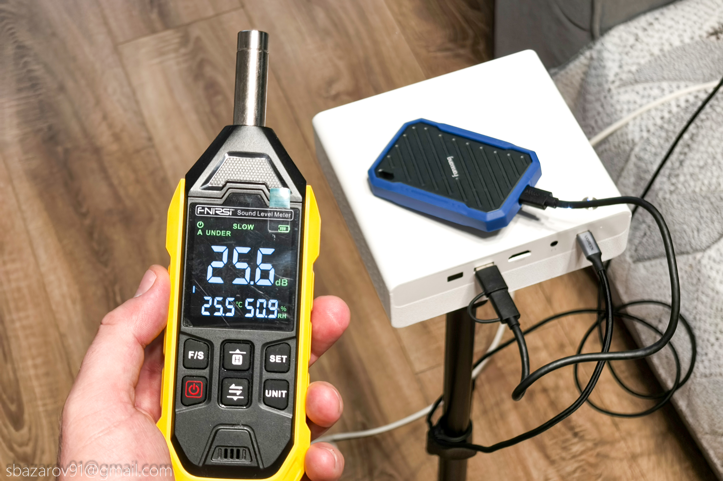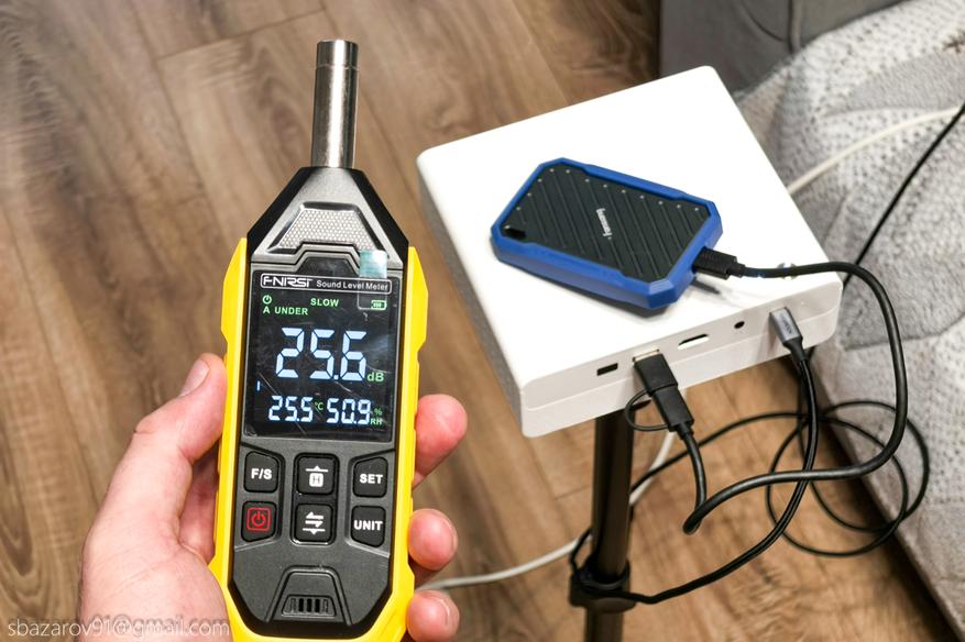Как оказалось, с завода выбран ECO-режим с минимальной яркостью и с полным отсутствием шума. Однако достаточно в настройках поднять яркость на пару ступеней — и тишину развеет встроенная система охлаждения. Но даже с ней этот уровень остается вполне комфортным и практически бесшумным (замер произведен с расстояния 50 см от проектора):