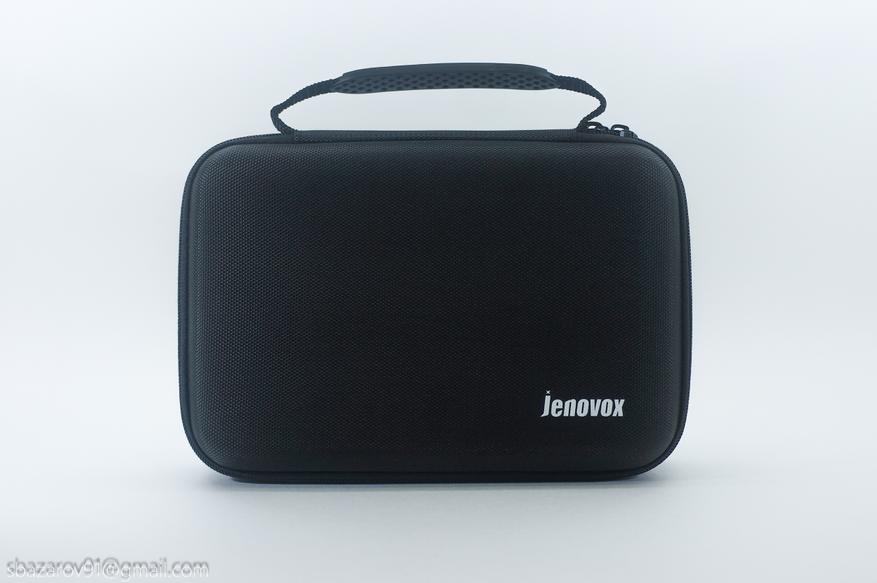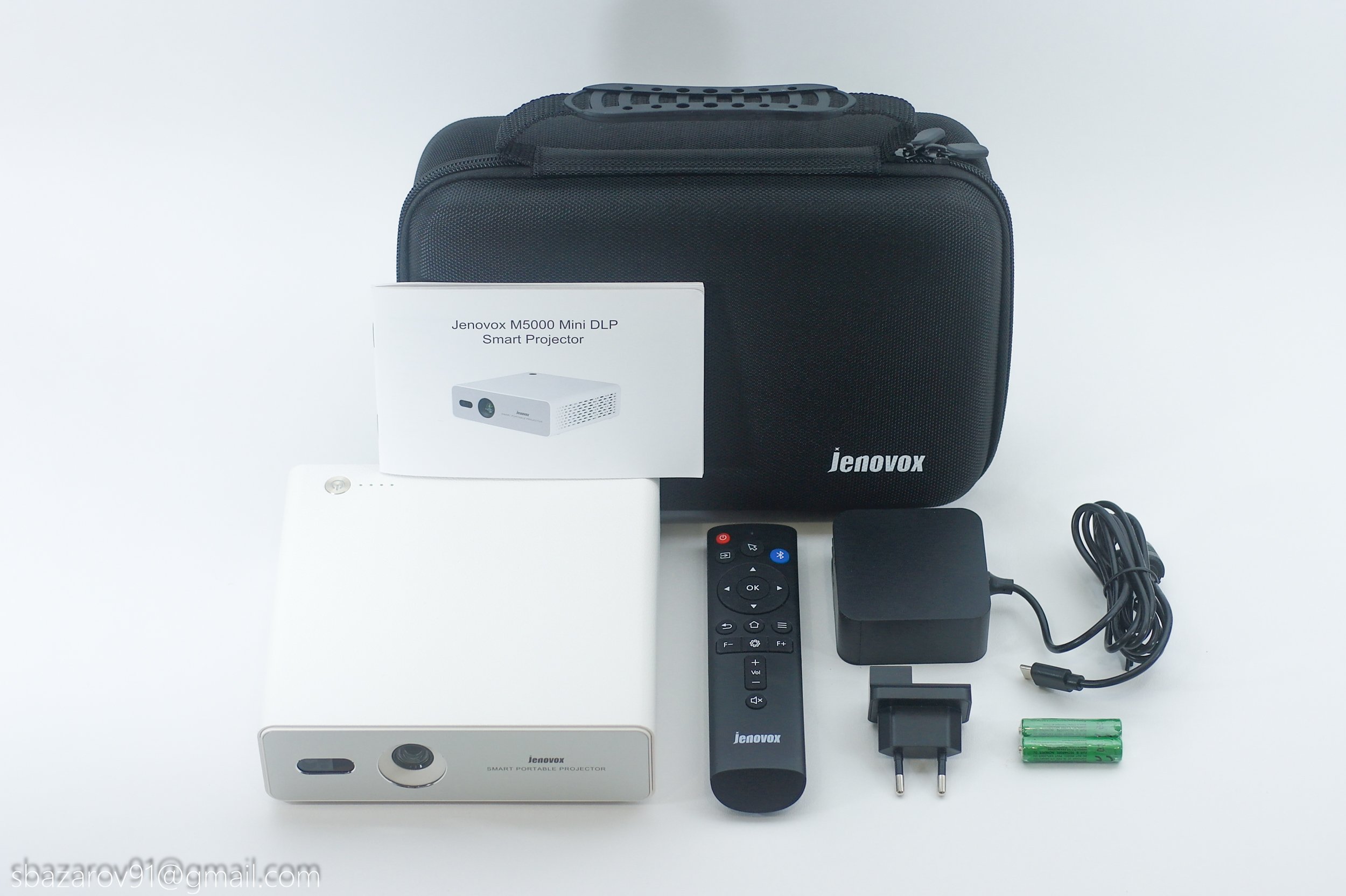 Jenovox M5000 mini можно использовать как дома, так и на природе (можно проецировать на любую стенку или поверхность). Поэтому в комплекте предусмотрена удобная сумка с ручкой для переноски. Внутри есть мягкое ложе для хранения проектора, отдельный кармашек для аксессуаров и дополнительная сетка для документации.
