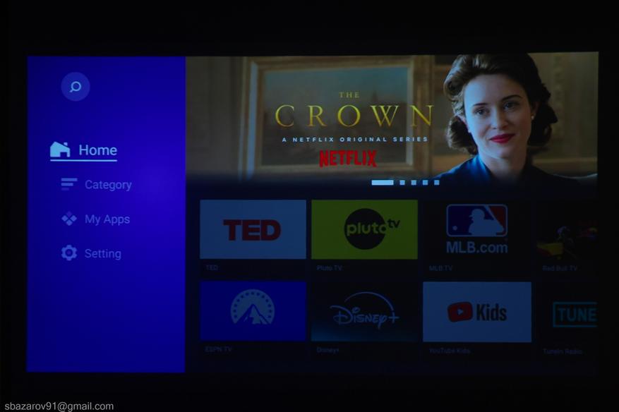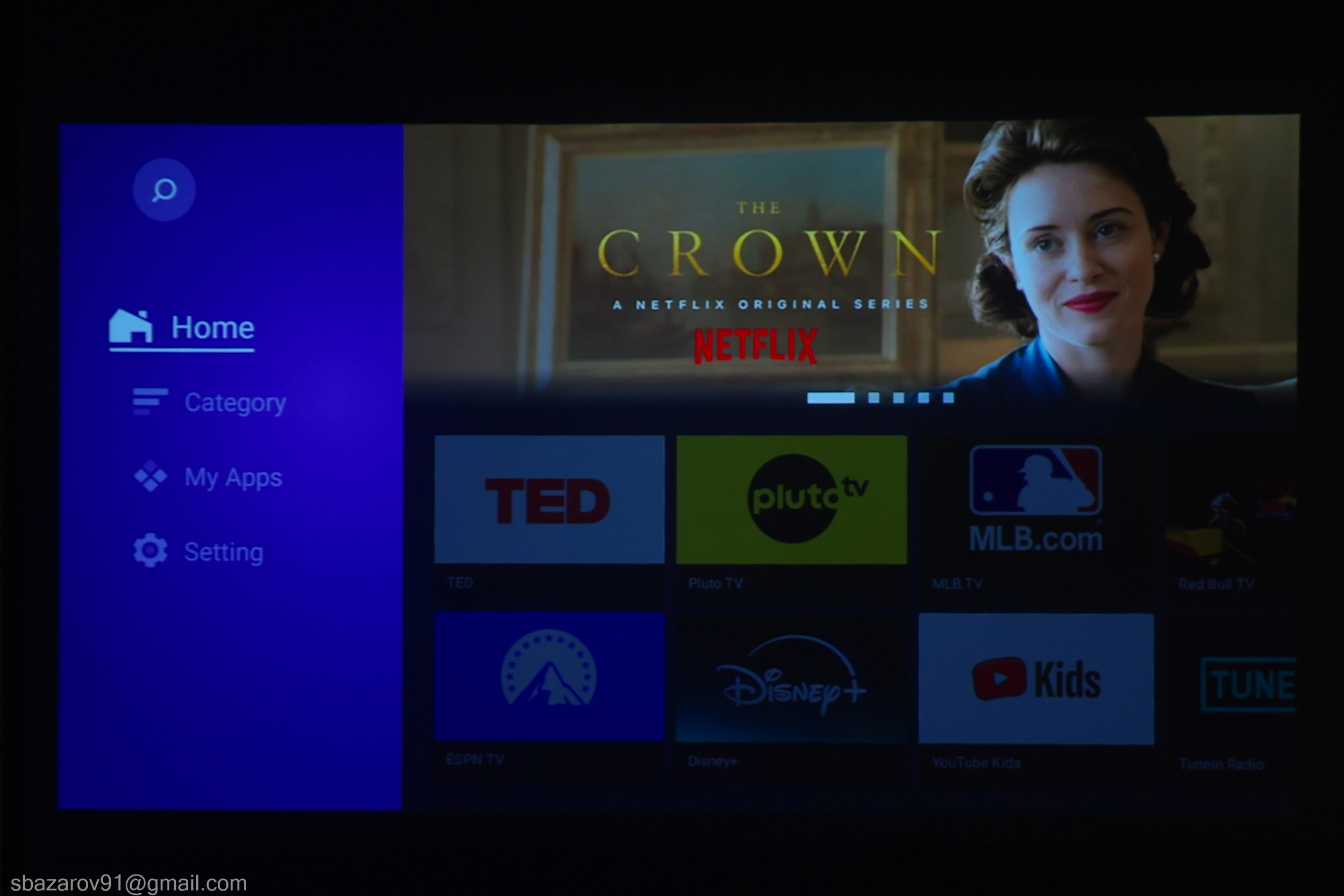 В качестве операционной системы для DLP-проектора Jenovox M5000 mini был выбран Android 13 с собственными доработками. Вместо привычной стоковой системы нас встречают плитки и панель быстрого доступа.