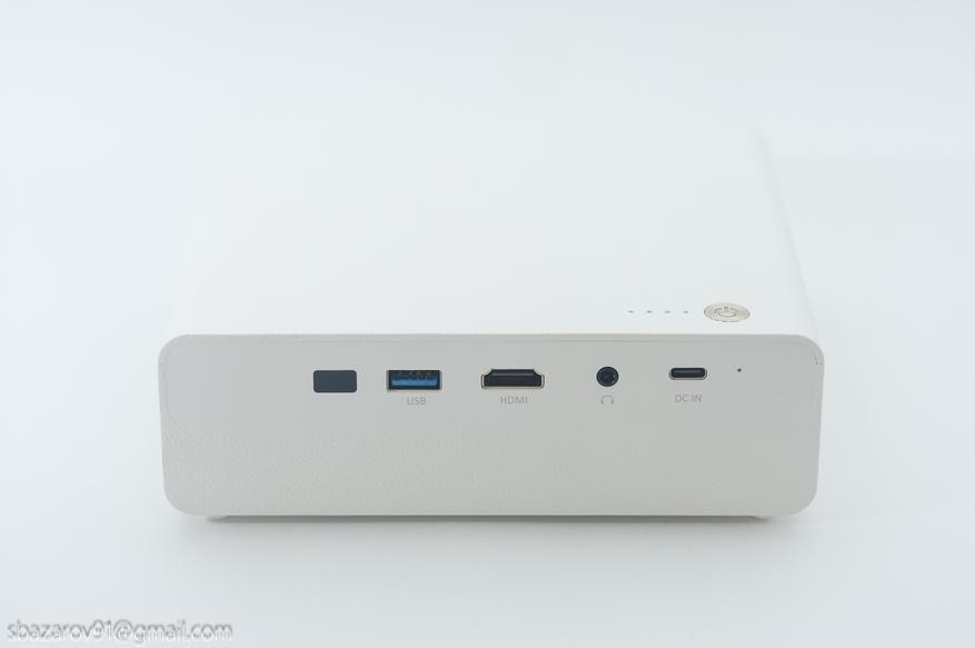 По количеству разъемов Jenovox M5000 mini довольно скромен и позволяет подключать только один внешний экран и один накопитель.