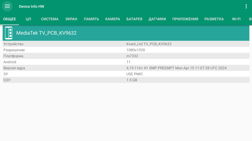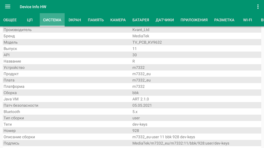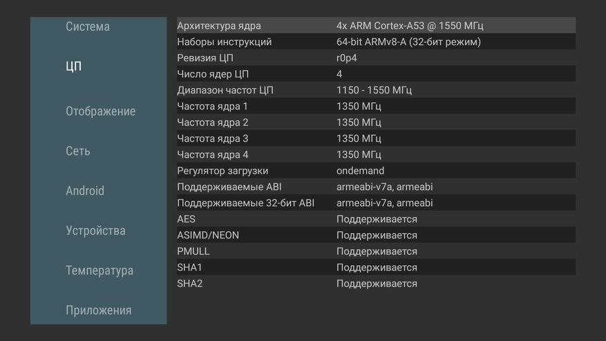На первоначальном этапе тестирования телевизора, давайте определимся с его аппаратной составляющей. Для этих целей я воспользуюсь некоторыми приложениями, которые способны выводить информацию о технических характеристиках устройств, работающих под управлением операционной системы Android.