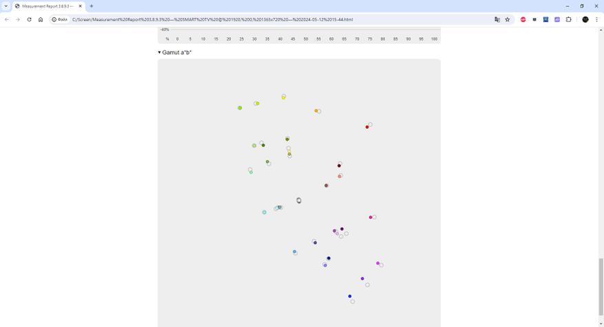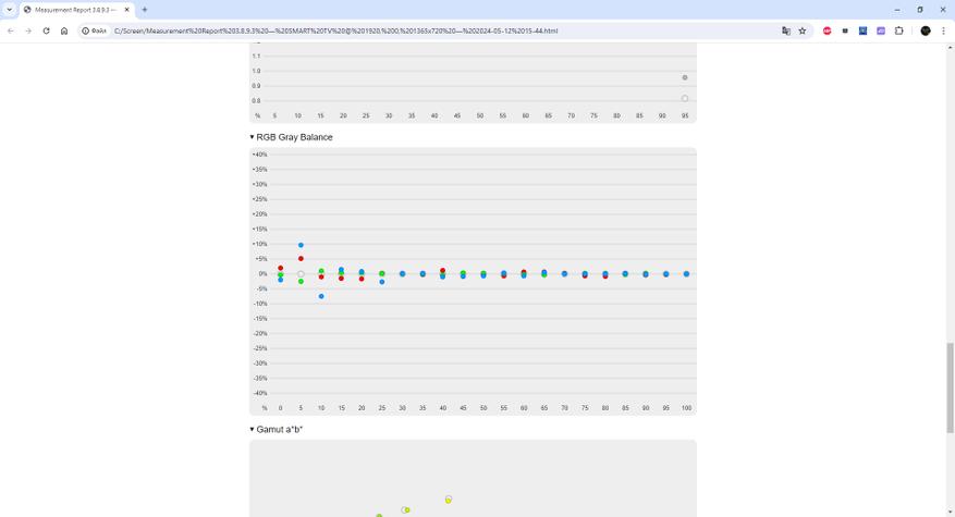 В графических представлениях цветового охвата можно увидеть, что форма кривой в целом соответствует ожидаемым результатам, но имеются некоторые отклонения от идеальной кривой, особенно в красных и зеленых оттенках. Это может влиять на восприятие цветов, особенно в динамичных сценах.
